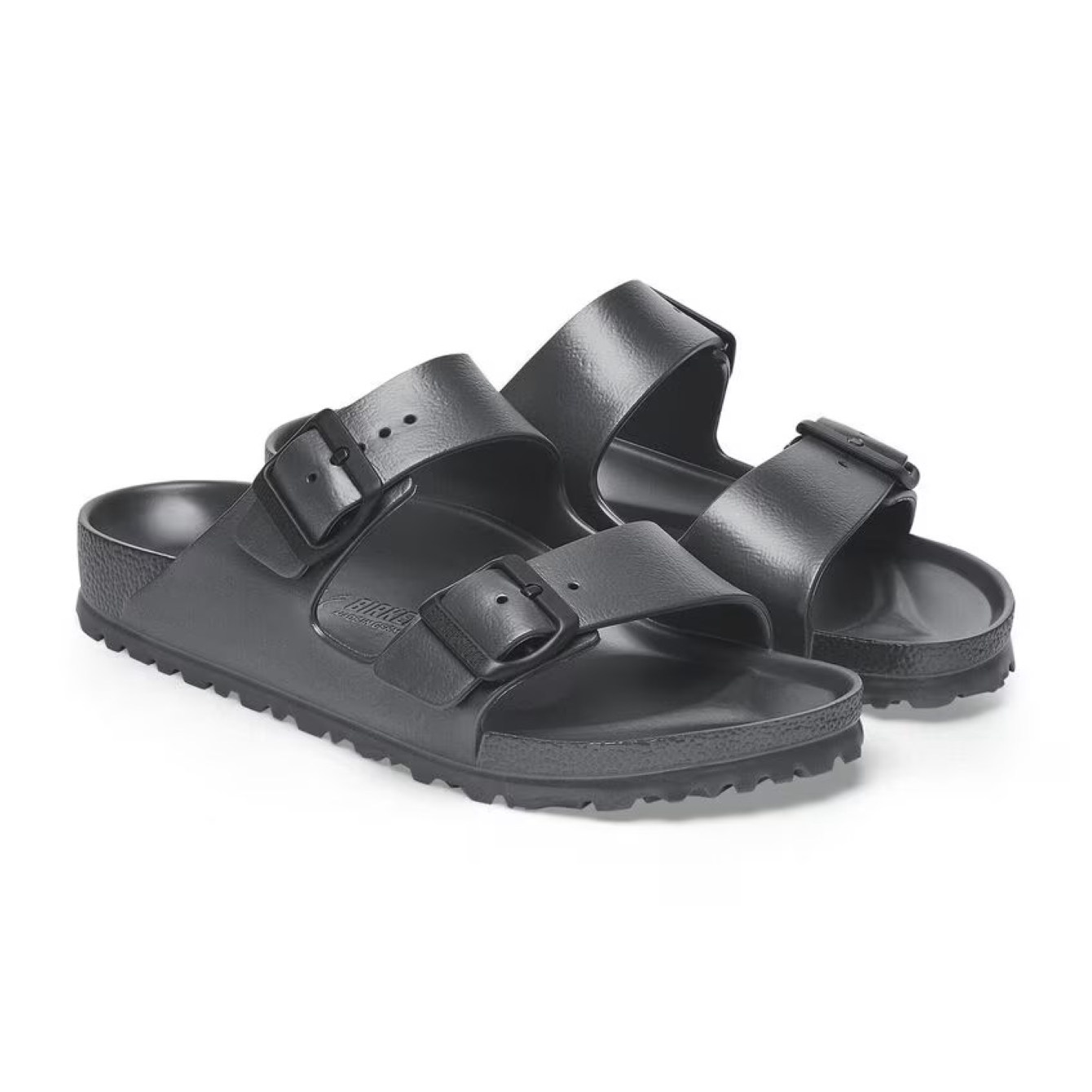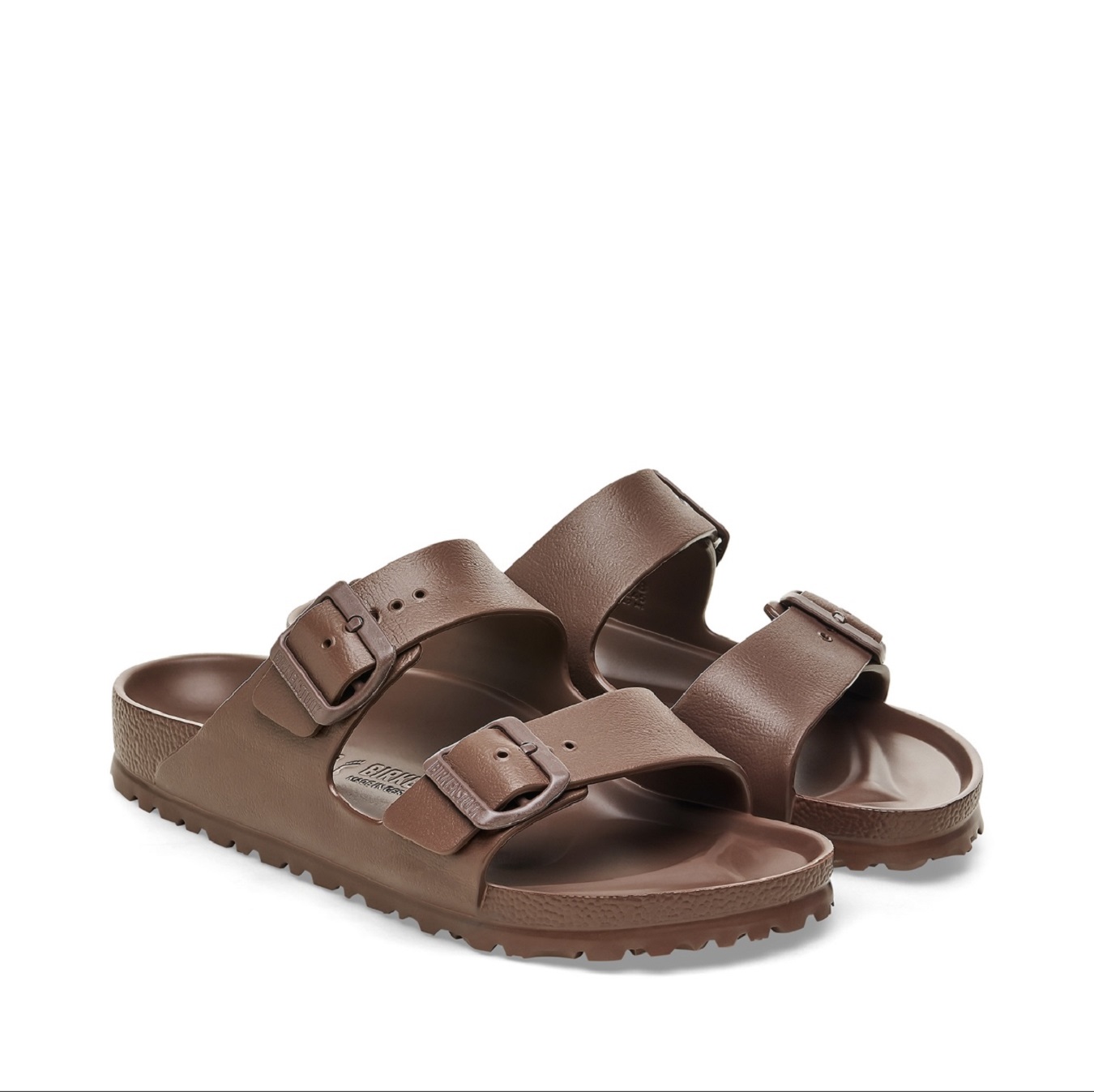 Ciabatta da uomo BIRKENSTOCK. Modello doppia fibbia realizzata in gomma EVA, materiale impermeabile, leggero ed altamente elastico.