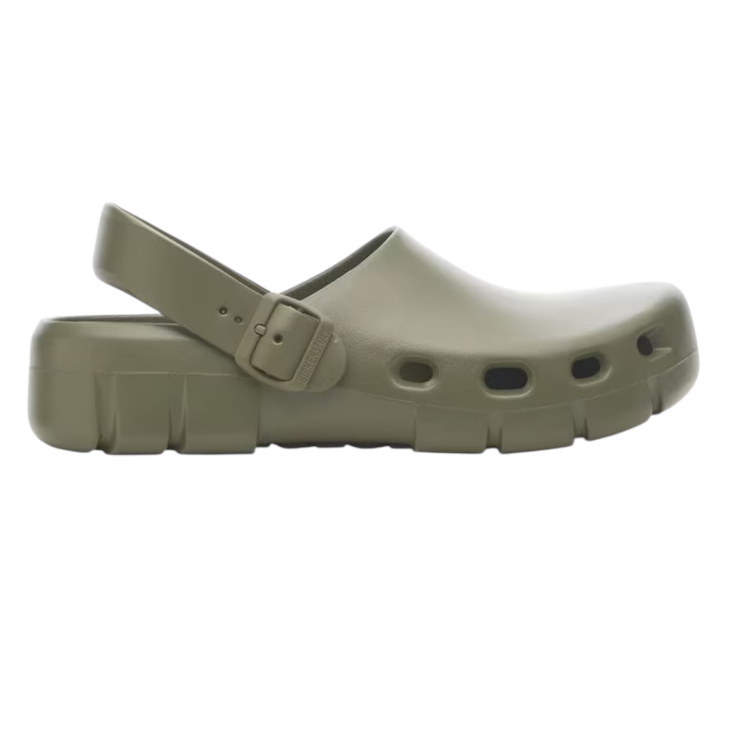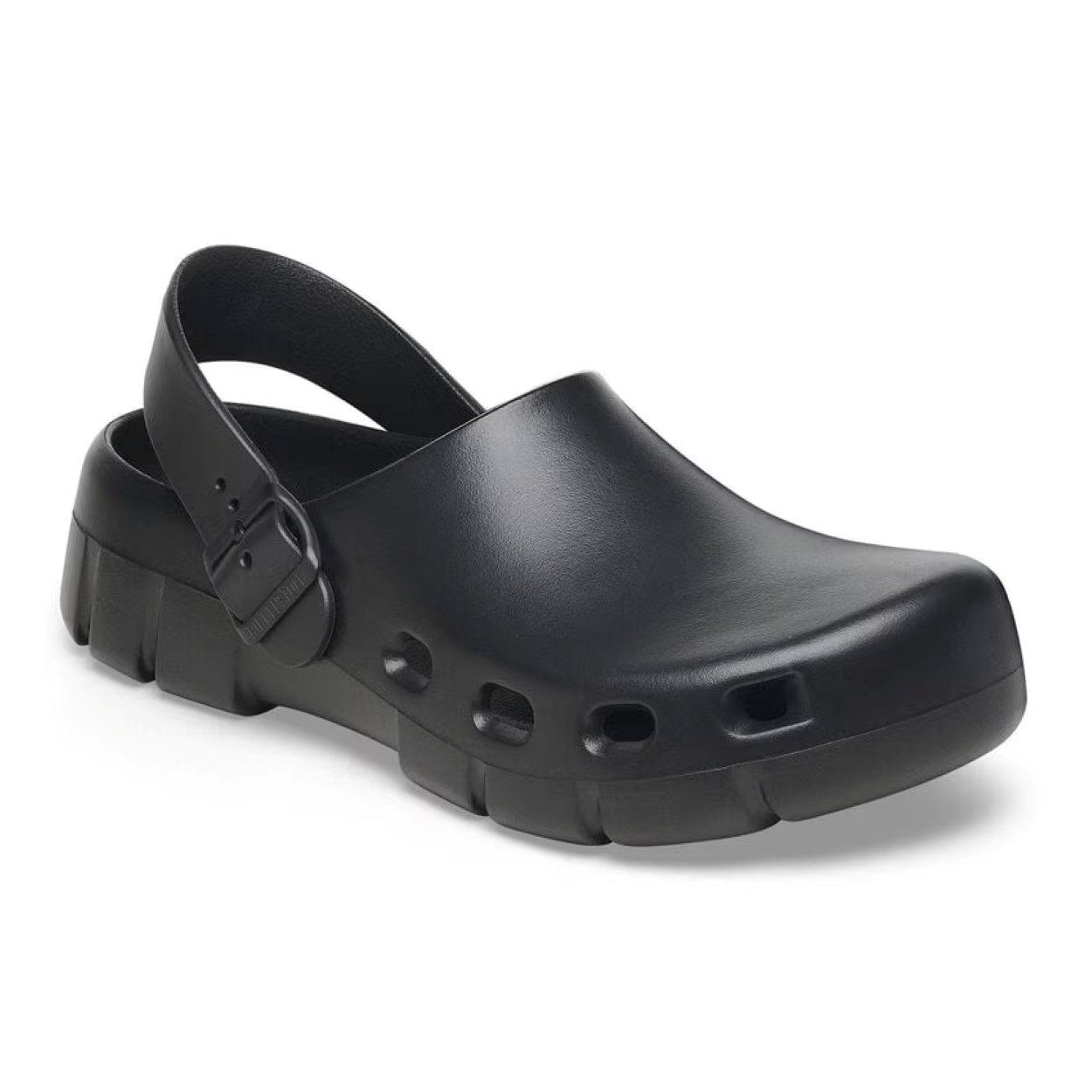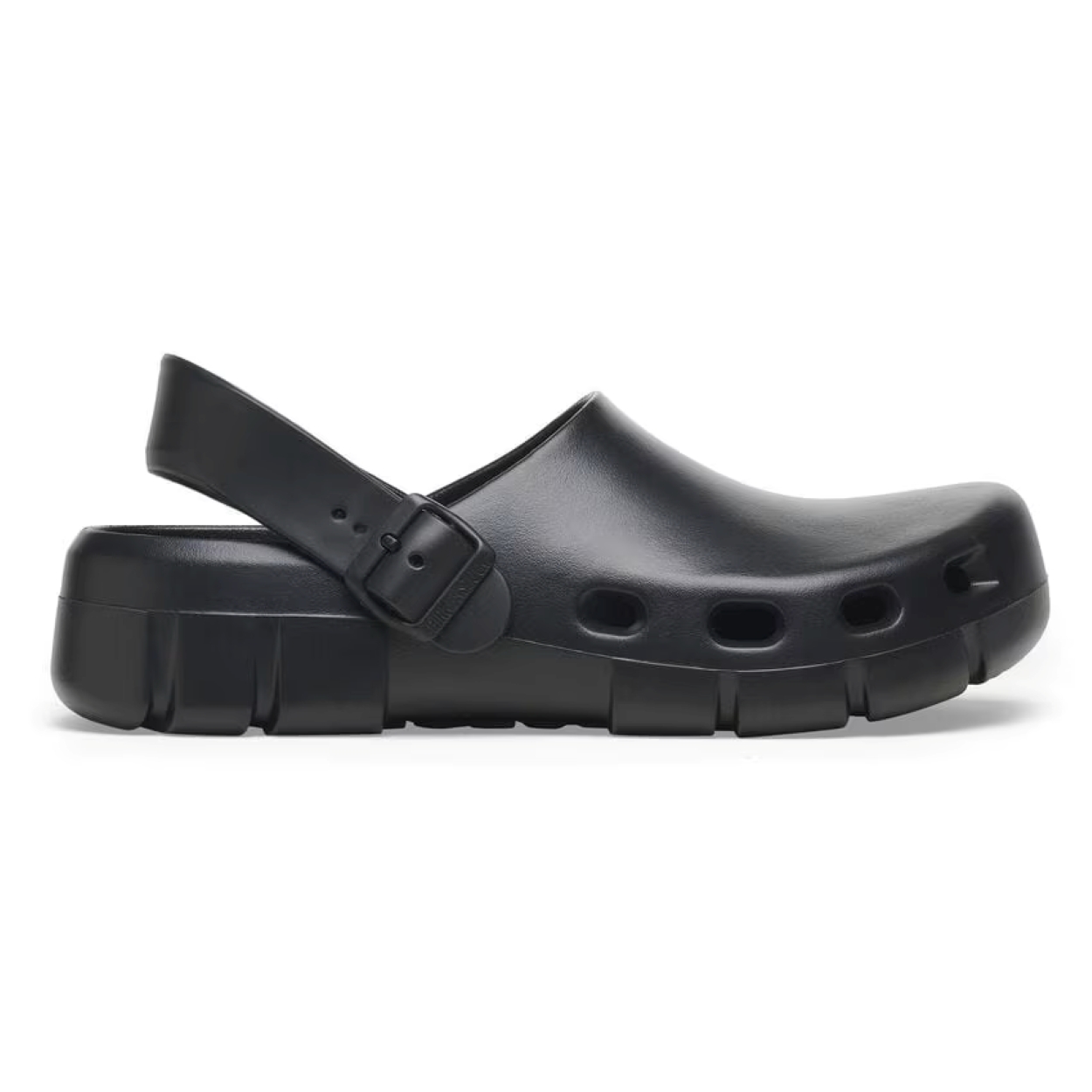 Sabot BIRKENSTOCK da uomo. Modello Birki Flow chiuso in gomma EVA ultra leggera, flessibile e resistente all'acqua. Con fondo carrarmato traforato e laccio posteriore removibile. Made in Germany