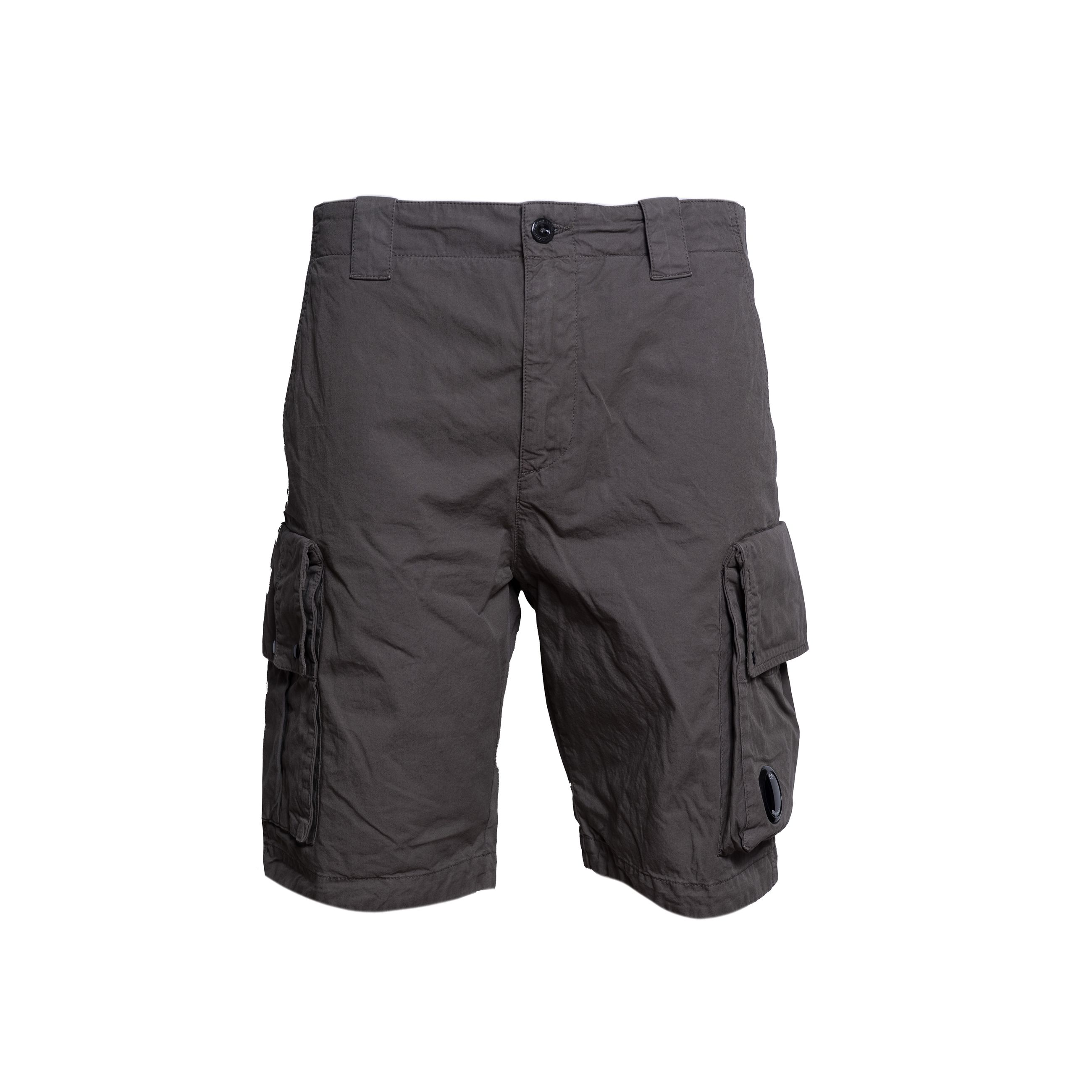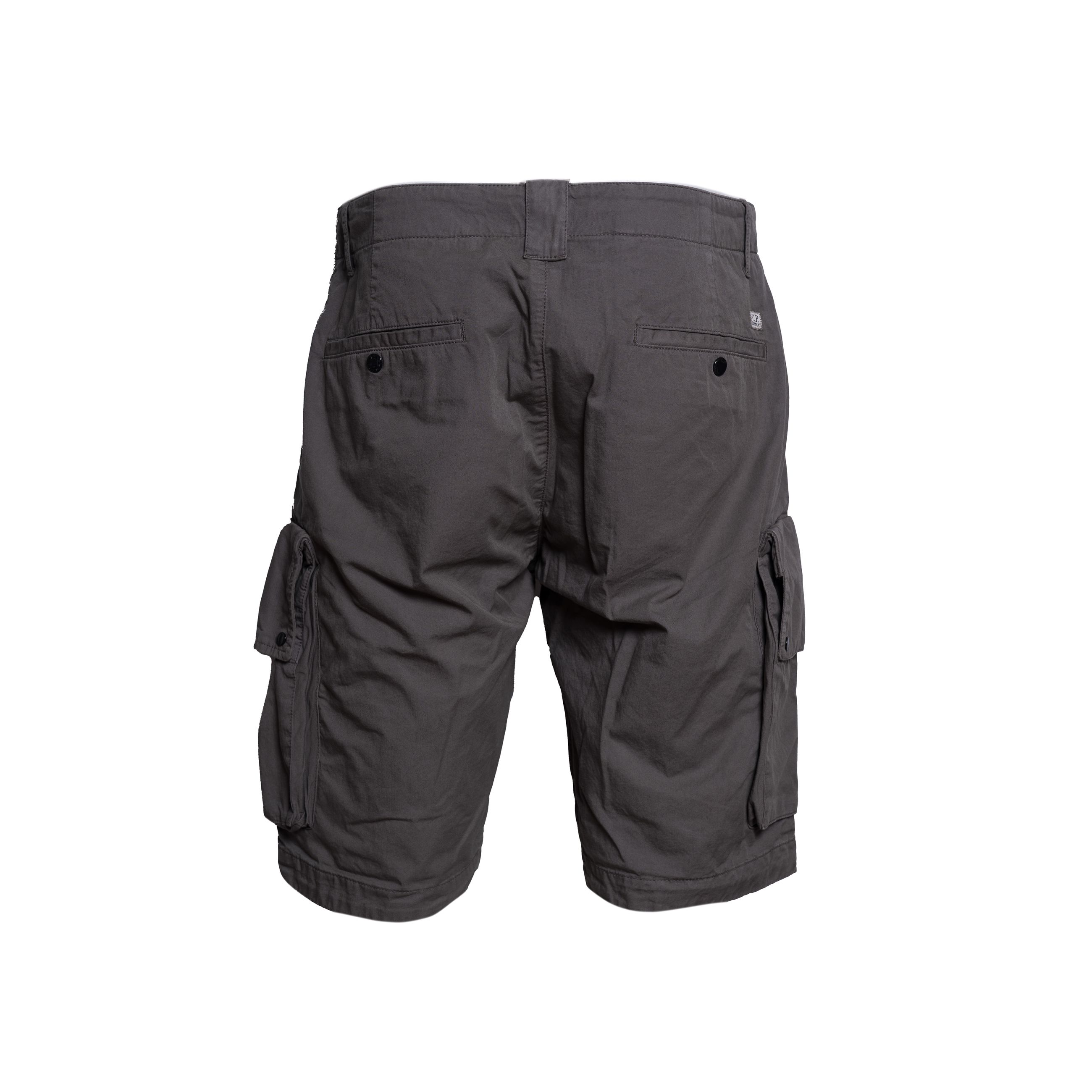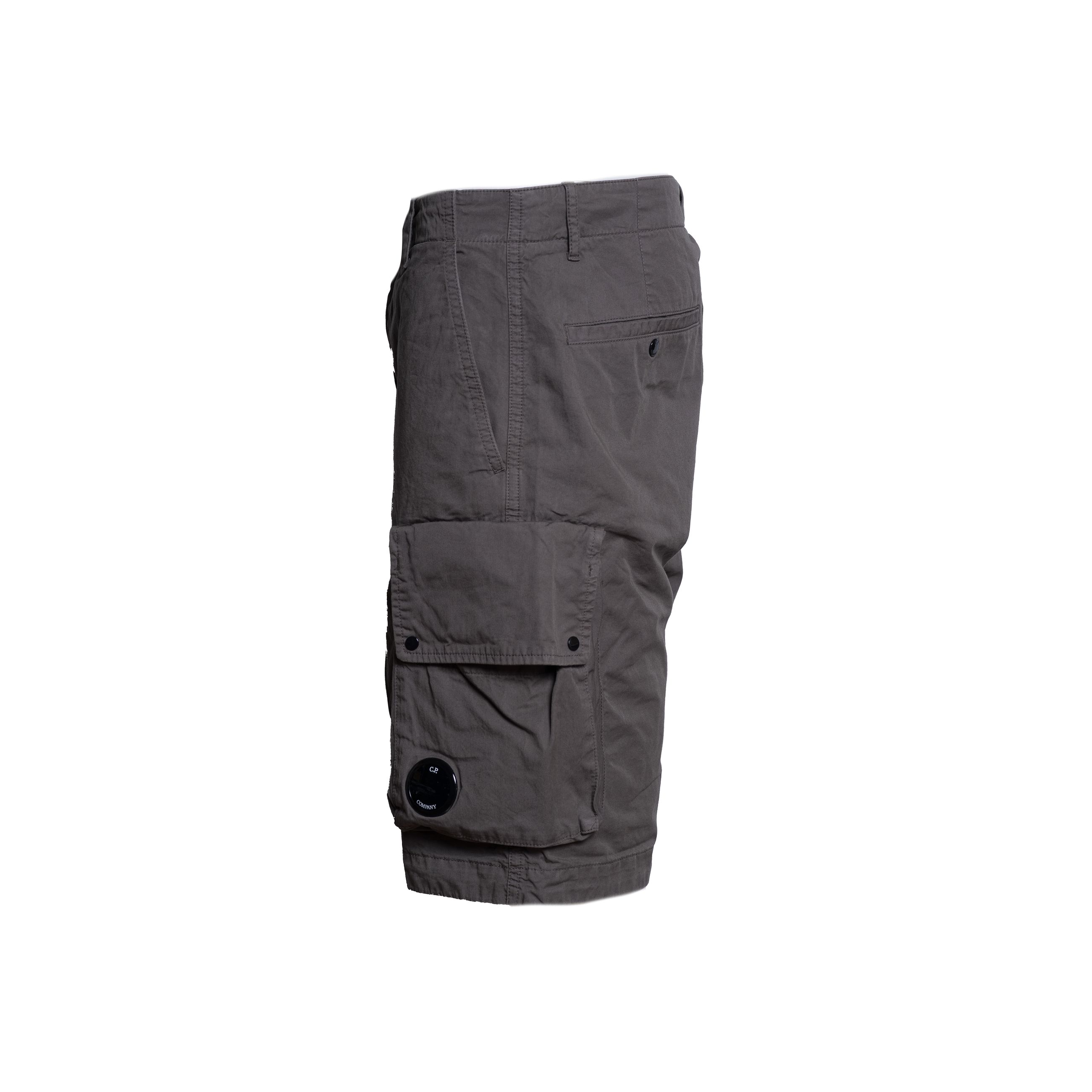 Bermuda da uomo C.P. COMPANY. Modello cargo tasconI lateralI con lente iconica applicata, tasche laterali a filetto e tasche posteriori con bottoncino automatico, passanti in vita per cintura. Realizzato in gabardina di cotone super leggero. Vestibilità regular. Made in Italy.