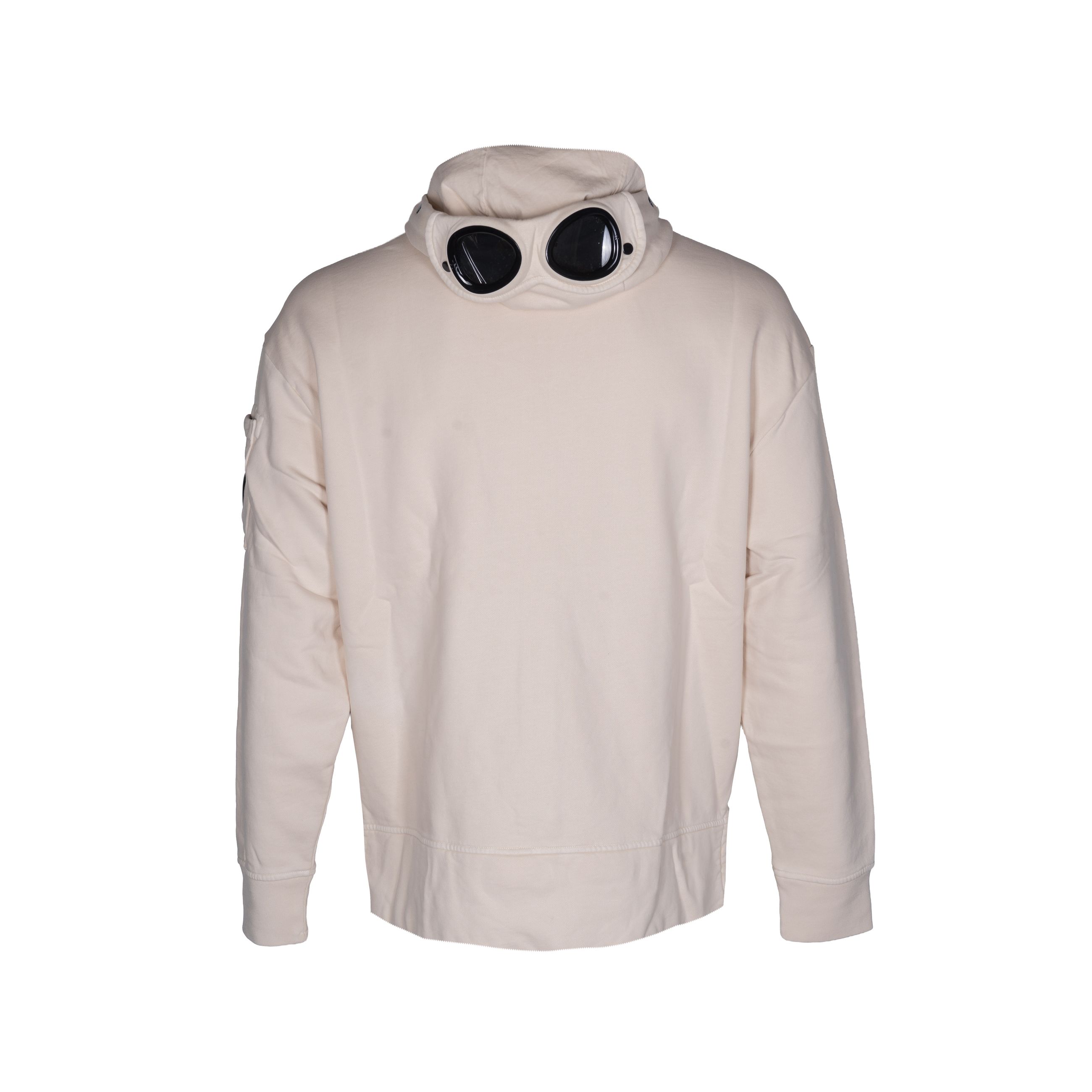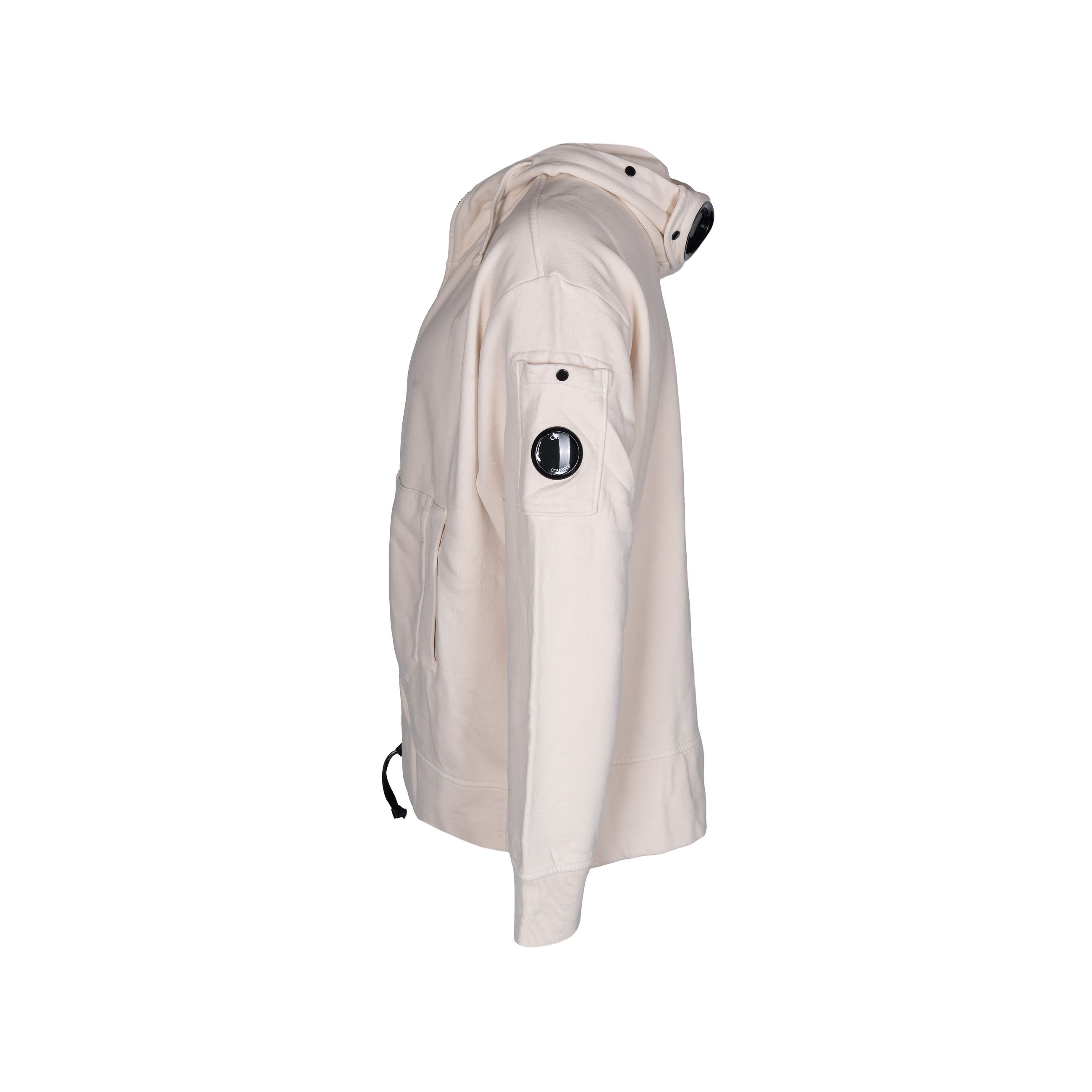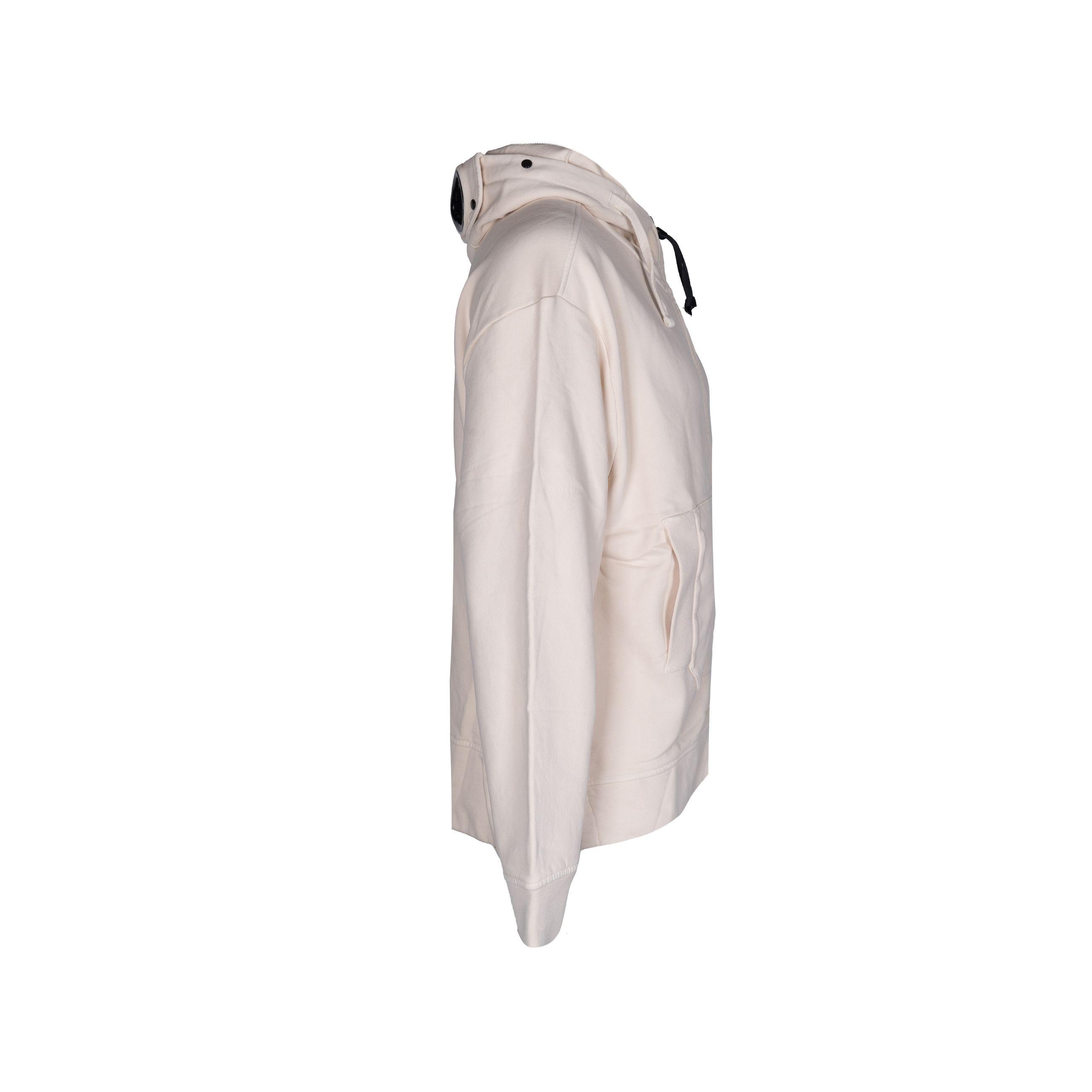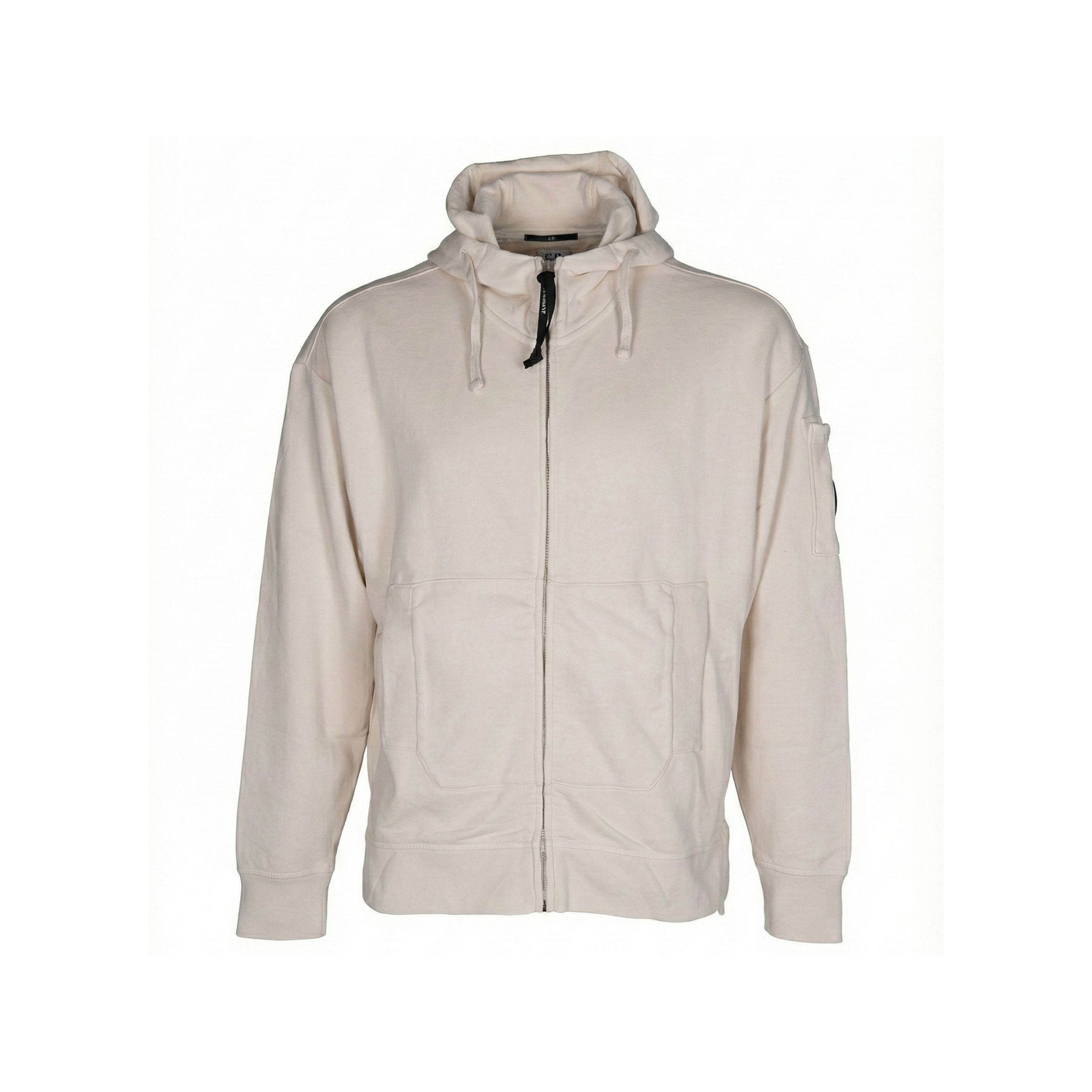 Felpa da uomo C.P. COMPANY. Modello full zip con cappuccio Goggle realizzata in fleece garzato e smerigliato a trama diagonale. Il tessuto morbido assicura comfort e libertà di movimento. Il modello presenta l’iconica Lente e cappuccio regolabile con lenti Goggle di C.P. Company. Completata da tasca a marsupio e polsini a costine. Tinta in capo. Boxy fit. Made in Italy.