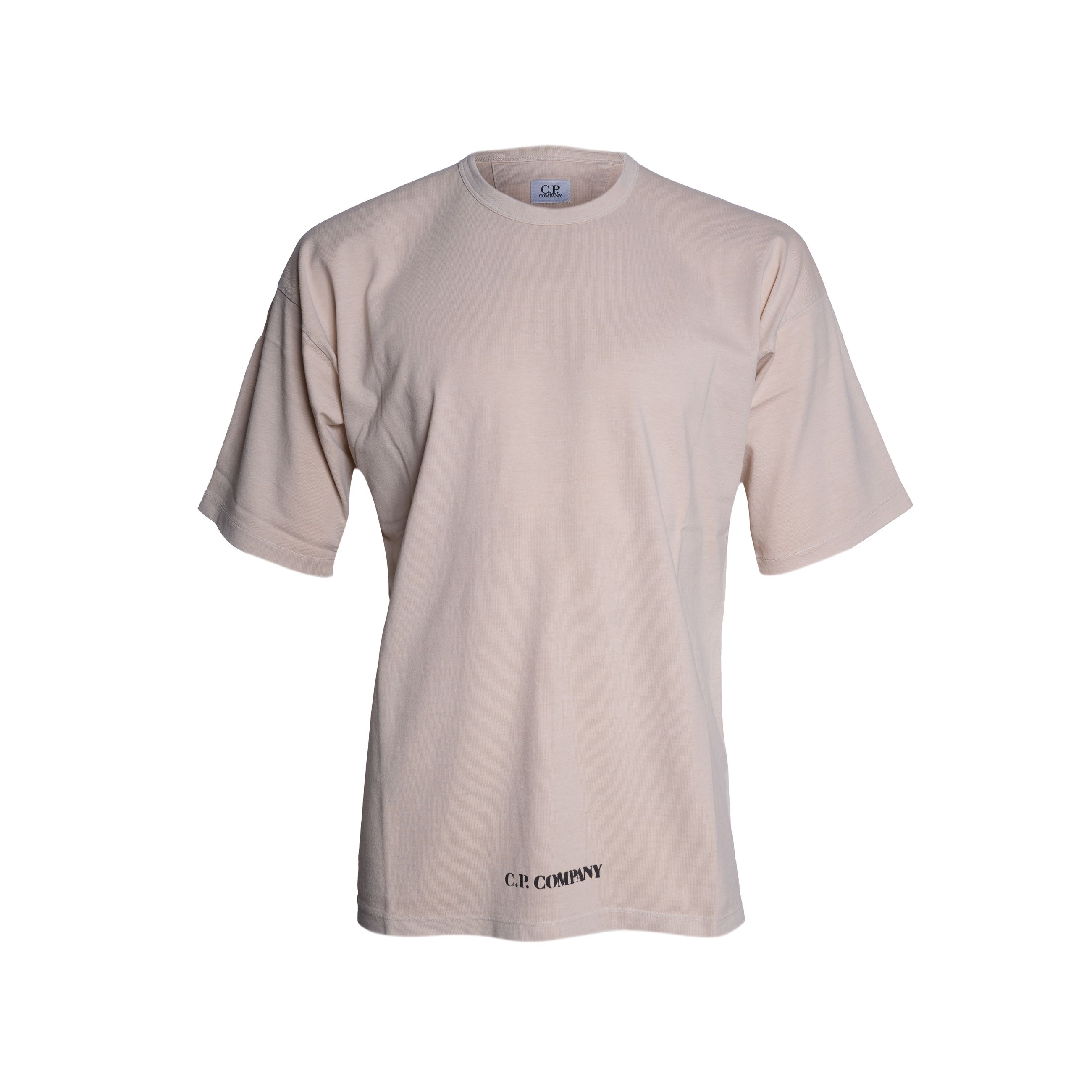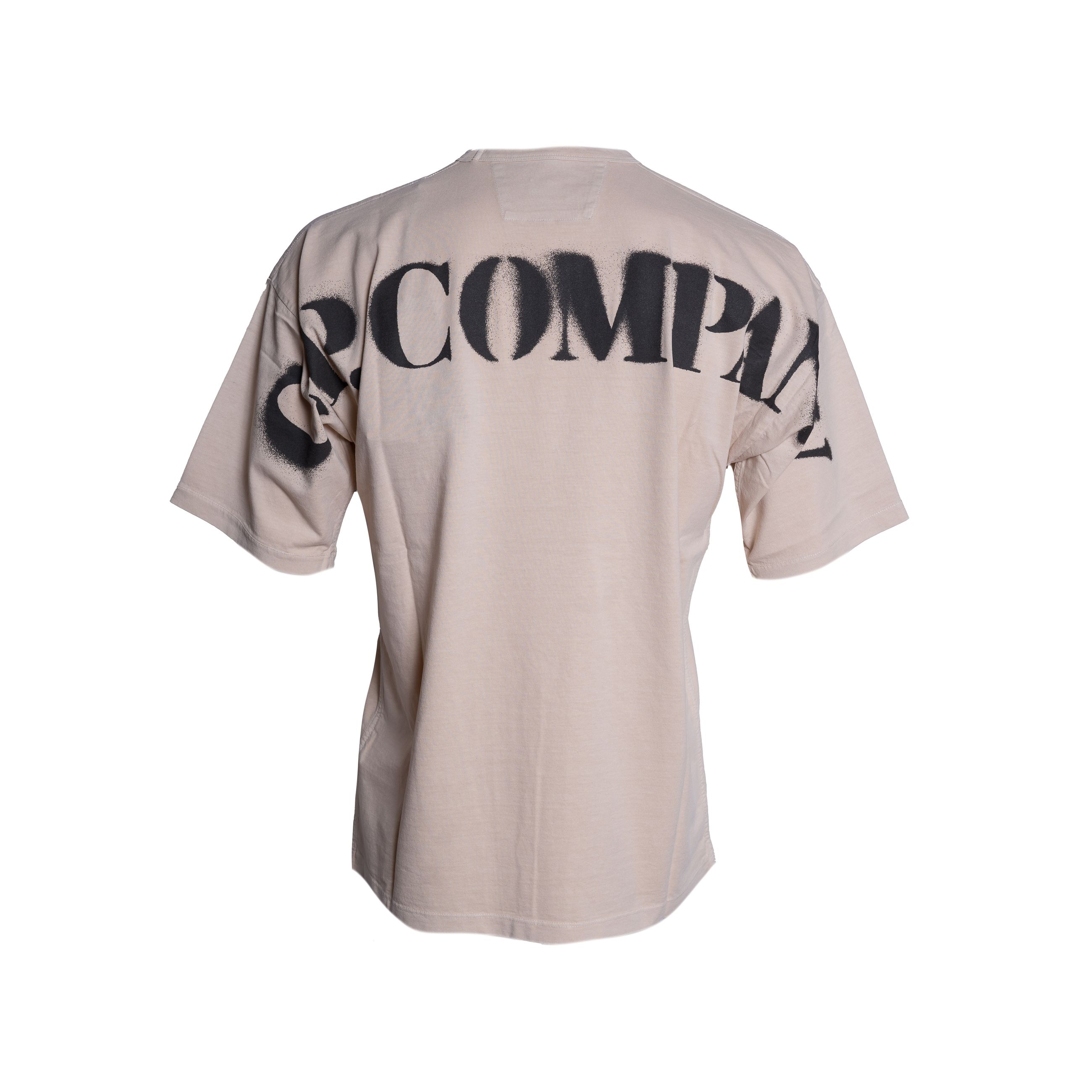 T-shirt da uomo C.P. COMPANY. Modello a maniche corte realizzata in jersey di cotone, un tessuto morbido e traspirante. Il modello presenta un girocollo a costine e il logo stampato effetto spruzzato sulla schiena e sul fondo frontale. La t-shirt è tinta in capo con trattamento 'Old' per un effetto vissuto e sfumature di colore uniche. Boxy fit. Made in Italy
