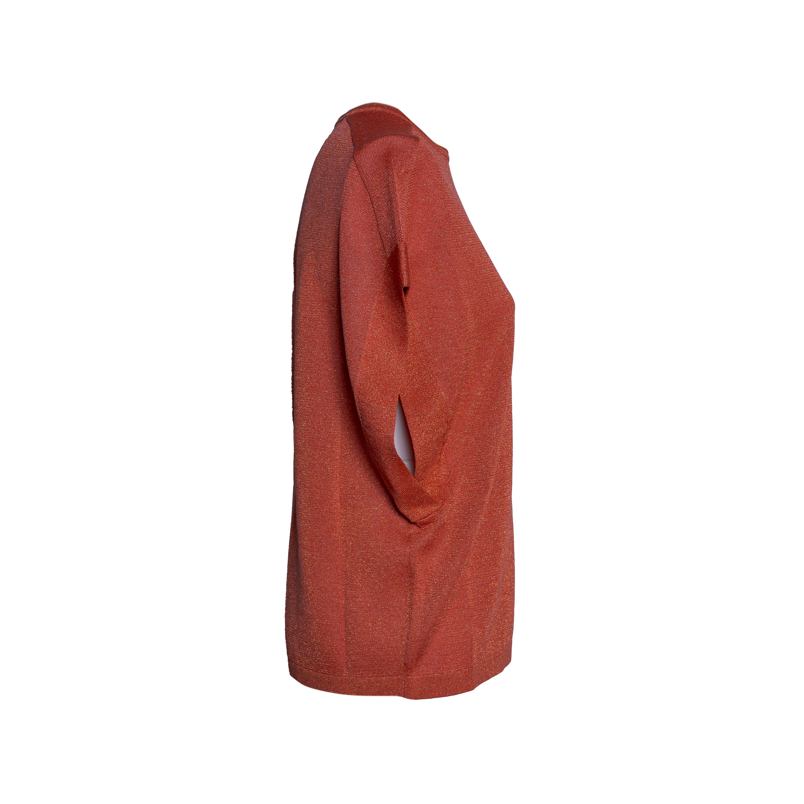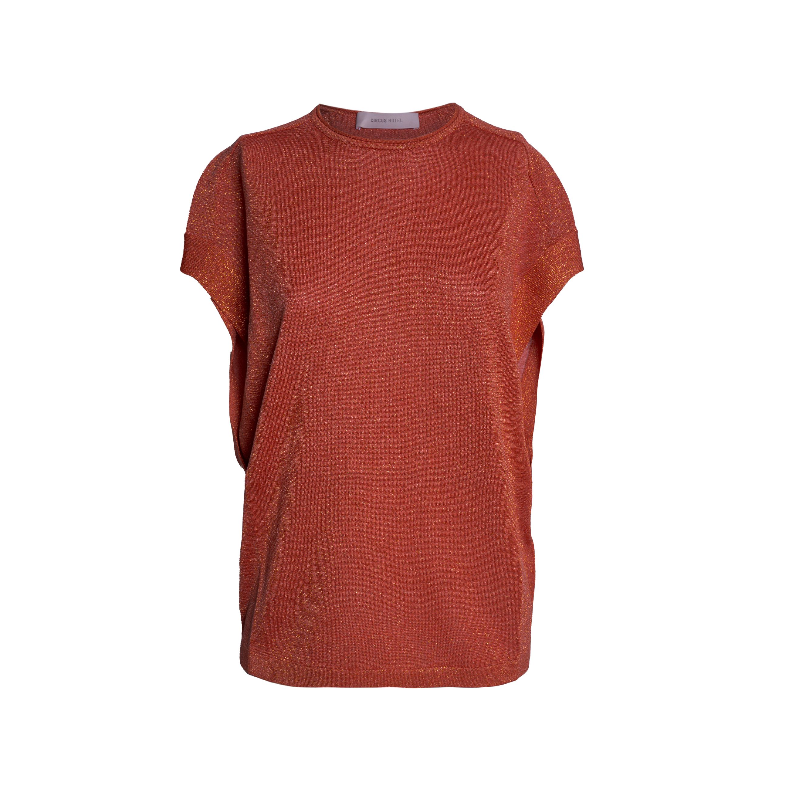 Maglia da donna CIRCUS HOTEL. Modello girocollo, vestibilità comoda, lunghezza al bacino e manica corta a kimono. Realizzata in viscosa nell'iconico tessuto laminato.