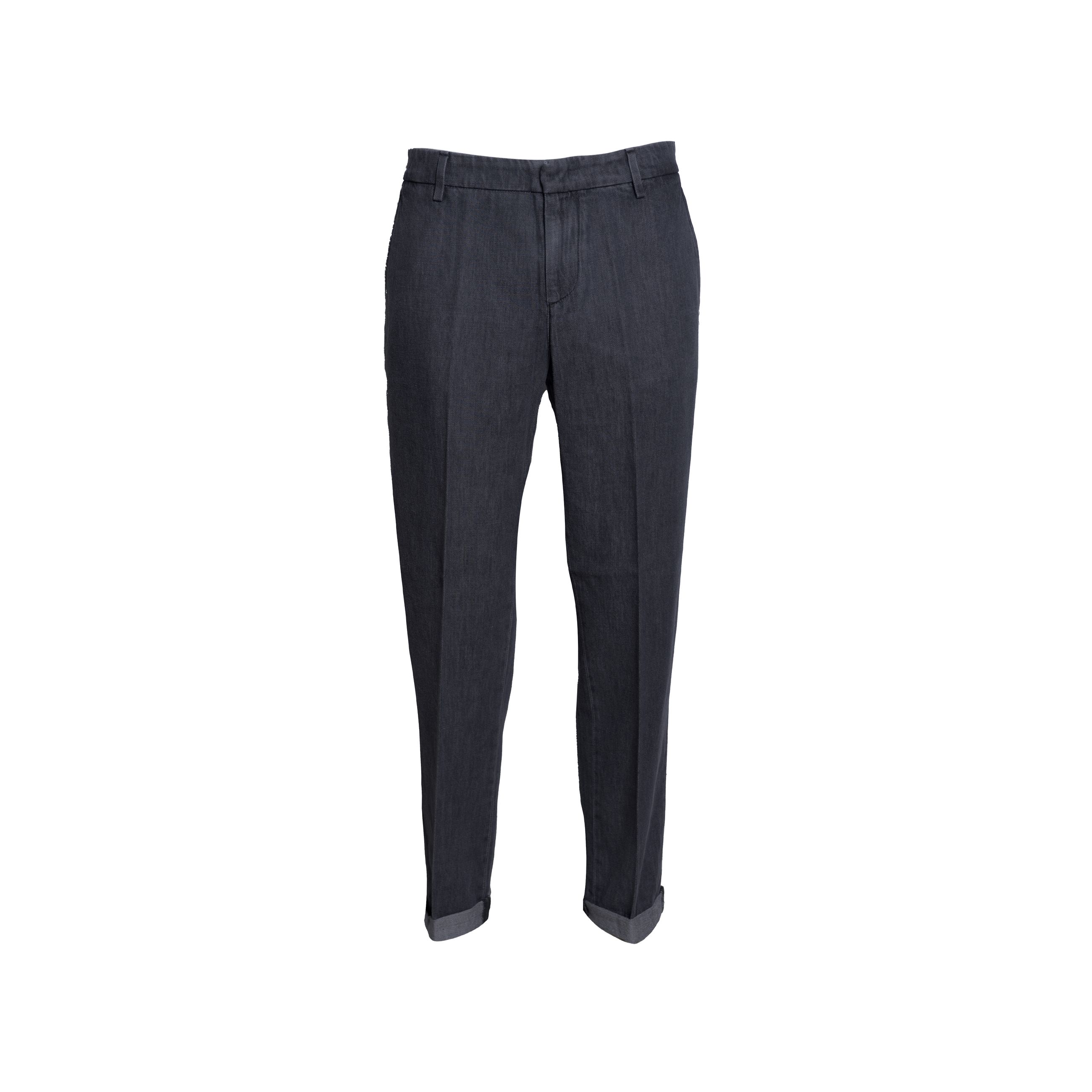 Pantalone da uomo DONDUP. Modello Gaubert relax ventre piatto, tasca america, gamba dritta, abbottonatura zip e bottone. Realizzato in denim di cotone e lyocell che conferisce al capo morbidezza e leggerezza. Made in Italy.