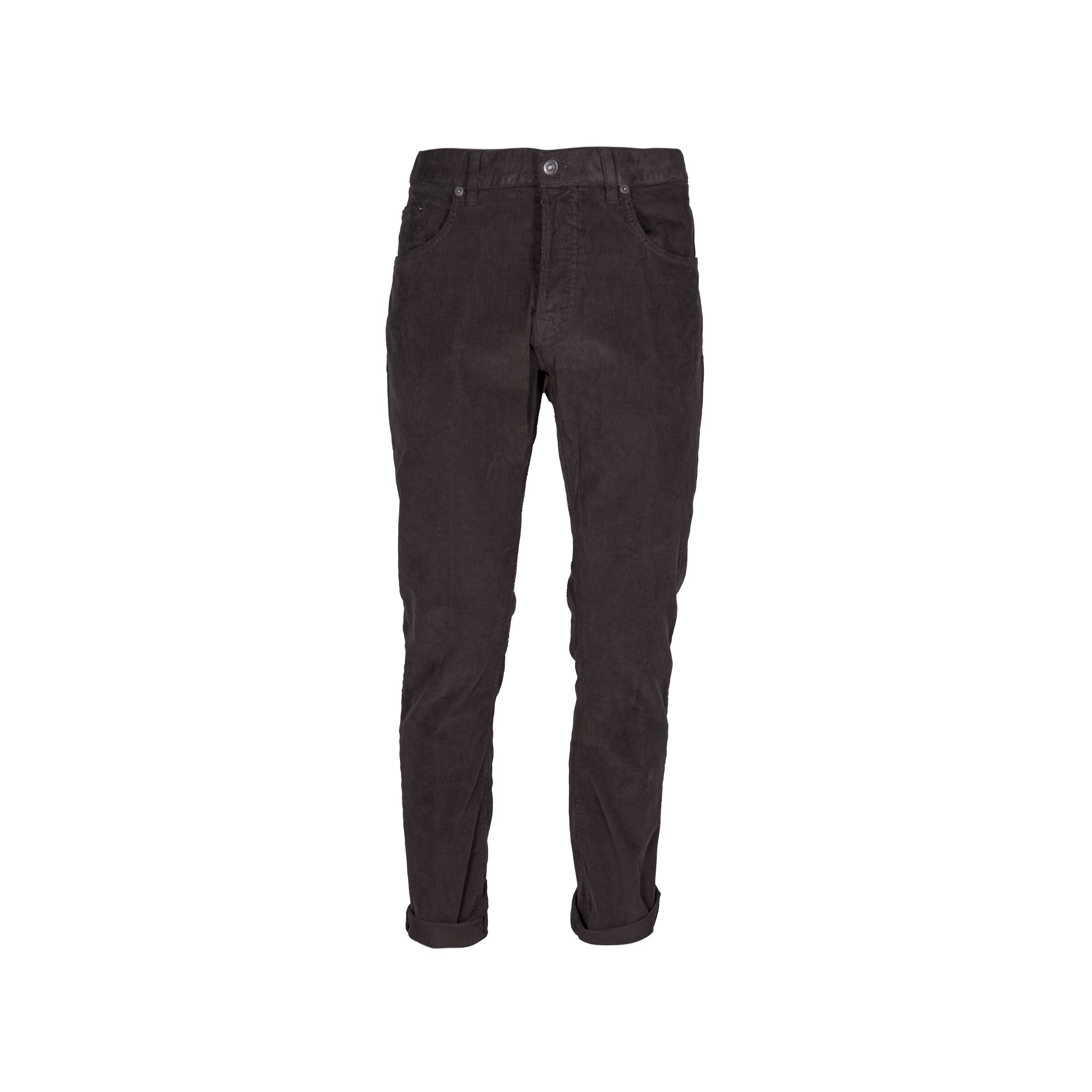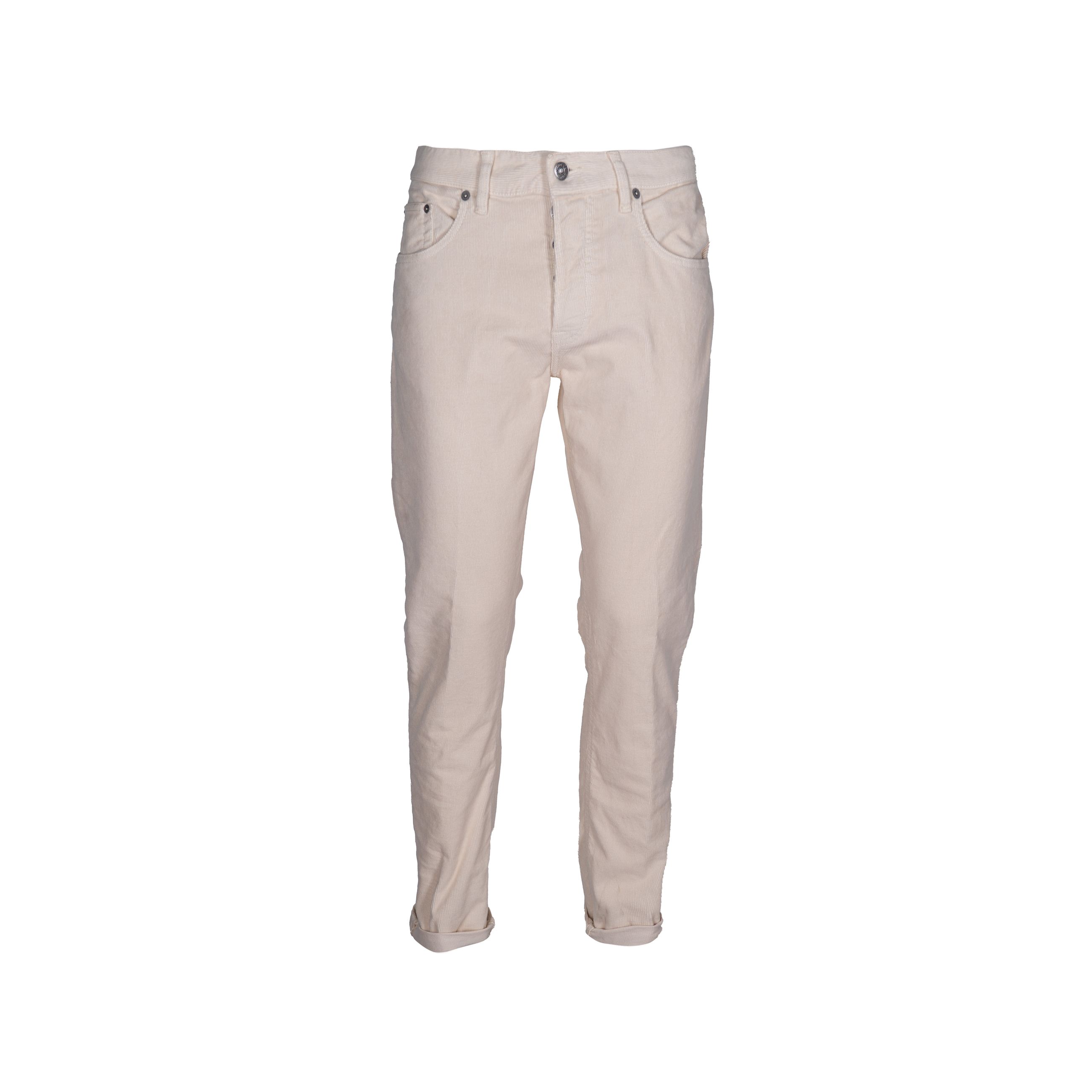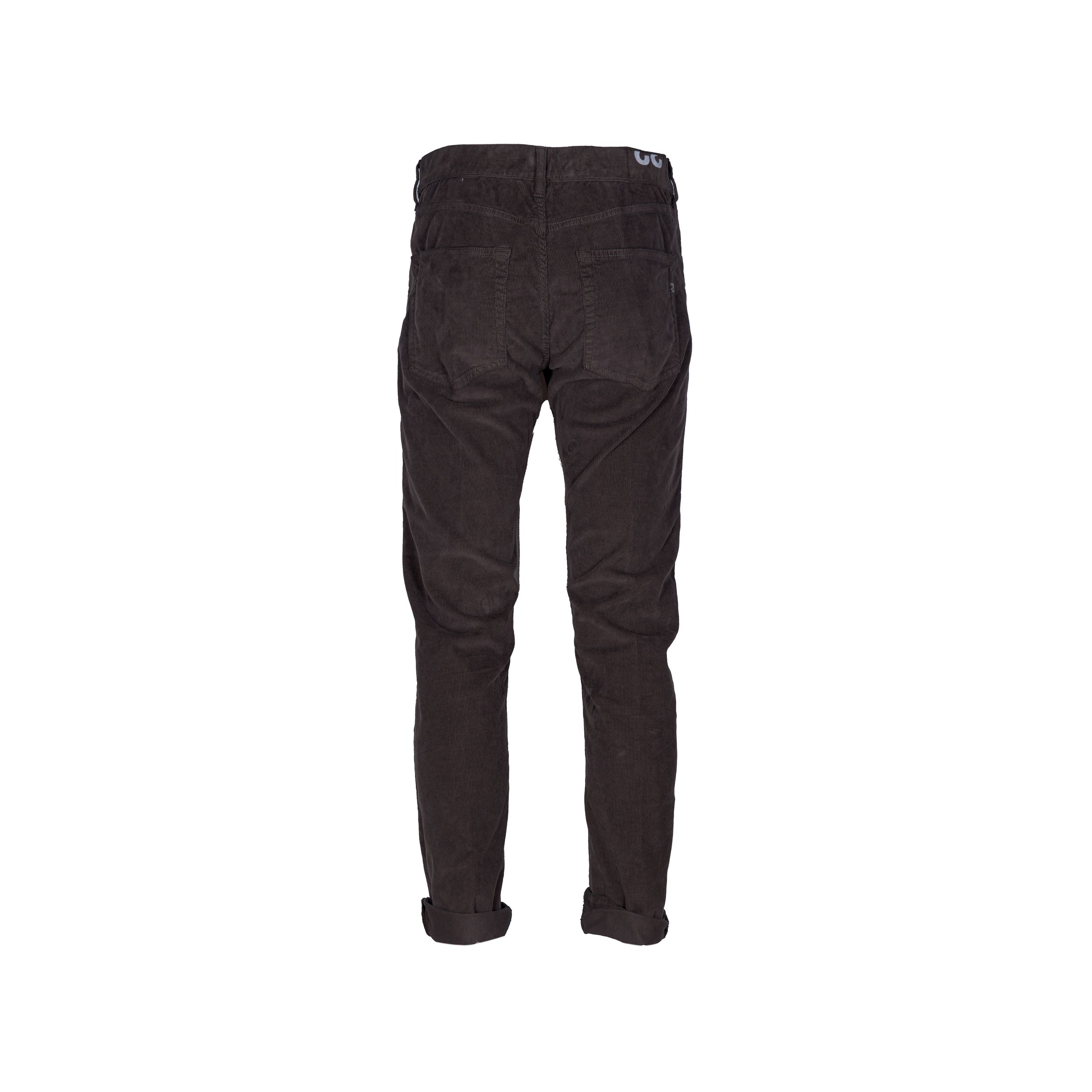 Jeans da uomo DONDUP. Modello Icon 5 tasche regular fit, vita bassa, realizzato in velluto di cotone a coste 1500 righe. Tintura in capo. Logo Dondup.