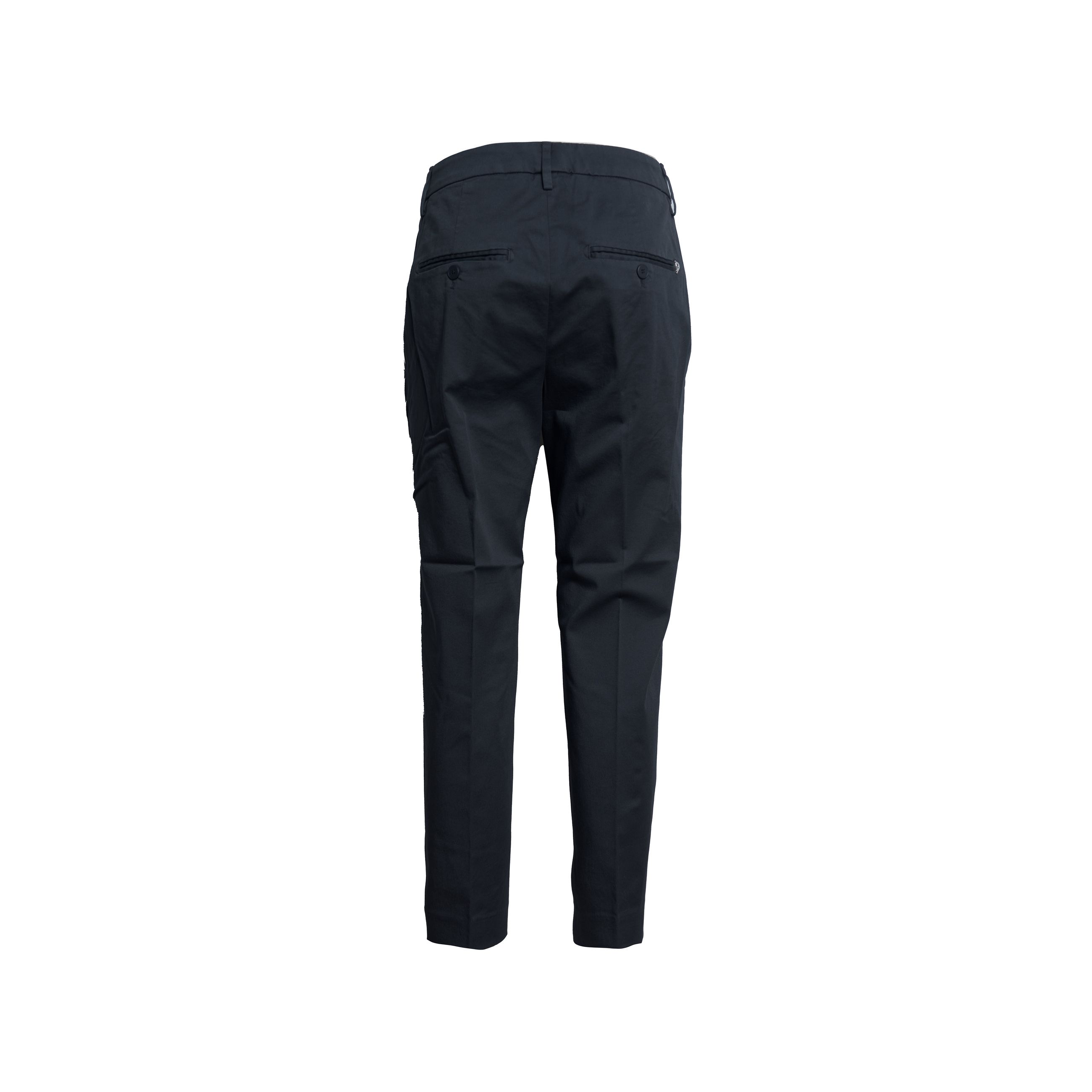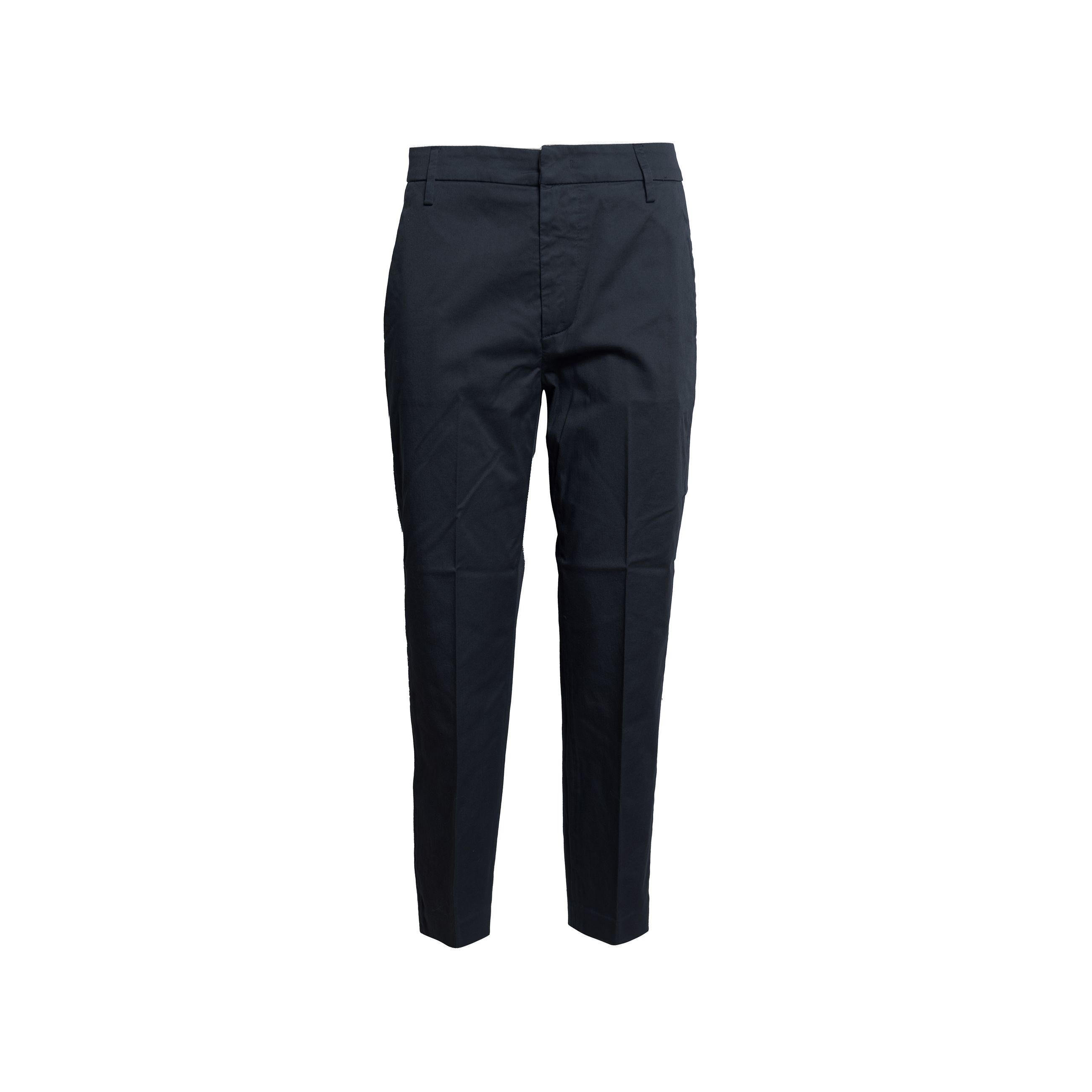 Pantalone da donna DONDUP. Modello Nima, chino ventre piatto, tasca america, loose fit, realizzato in gabardina di cotone stretch, chiusura con bottone e zip. Made in Italy.