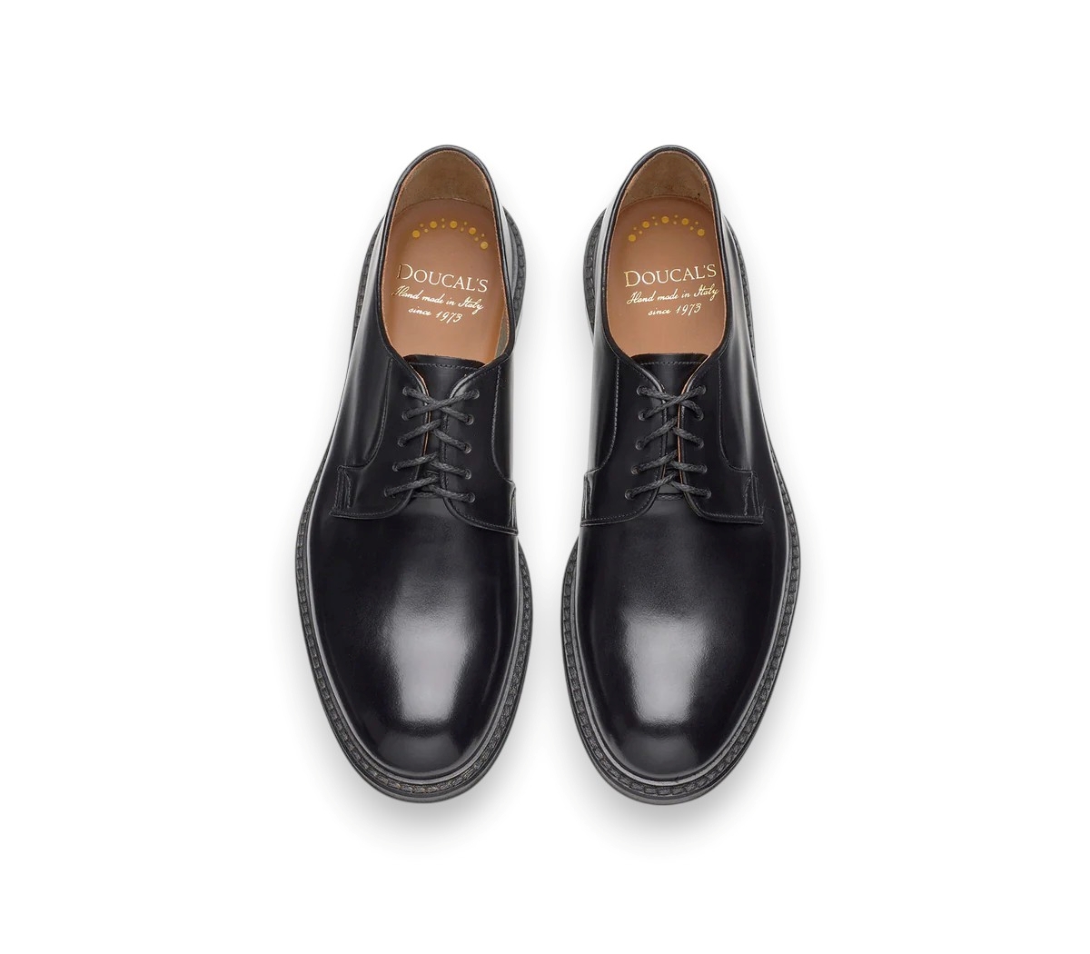 Scarpa da uomo DOUCAL'S. Modello derby allacciata a cinque fori, punta tonda, finitura lucida. Realizzata in pelle di vitello nappato e conciato in vasca, rifinizione a mano che contribuisce La lavorazione Blake rende la scarpa resistente e morbida nella calzata. Suola in cuoio. Calzata regolare.