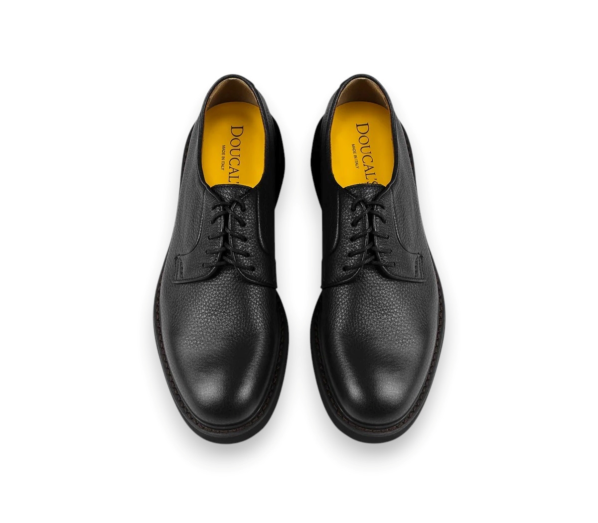 Scarpa da uomo DOUCAL'S. Modello Derby stringata in pelle di vitello realizzata con una particolare lavorazione che conferisce alla pelle una morbidezza confortevole e rifinita con lucidatura valorizzando la linea classica della calzatura. La suola in gomma assicura stabilità e praticità, mentre la lavorazione Blake garantisce una calzata morbida e resistente. Made in Italy.