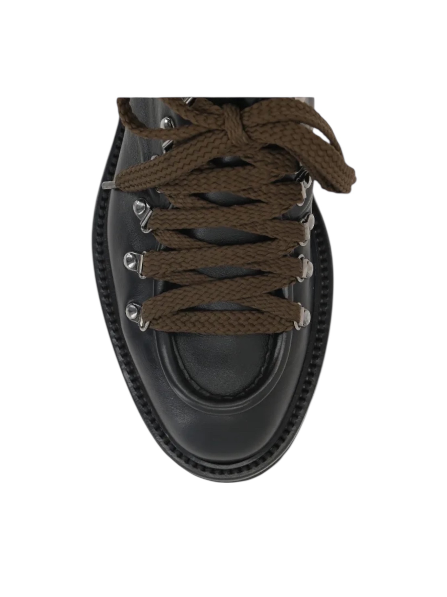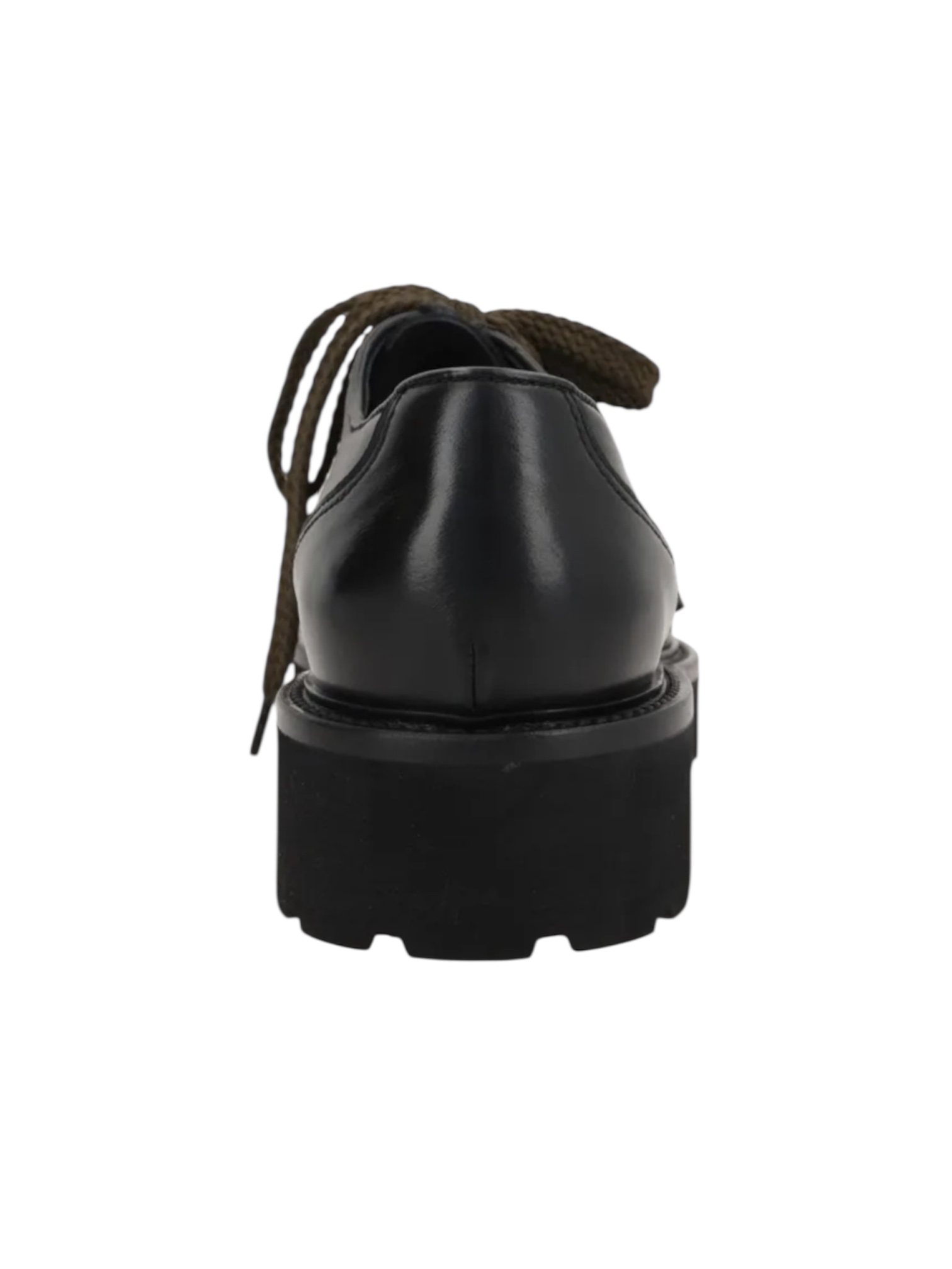 Scarpa da donna DOUCAL'S. Modello Pedula bordata in pelle. Suola in gomma carro armato altezza 3 cm. Dettaglio ganci e laccio in cotone. Made in Italy.