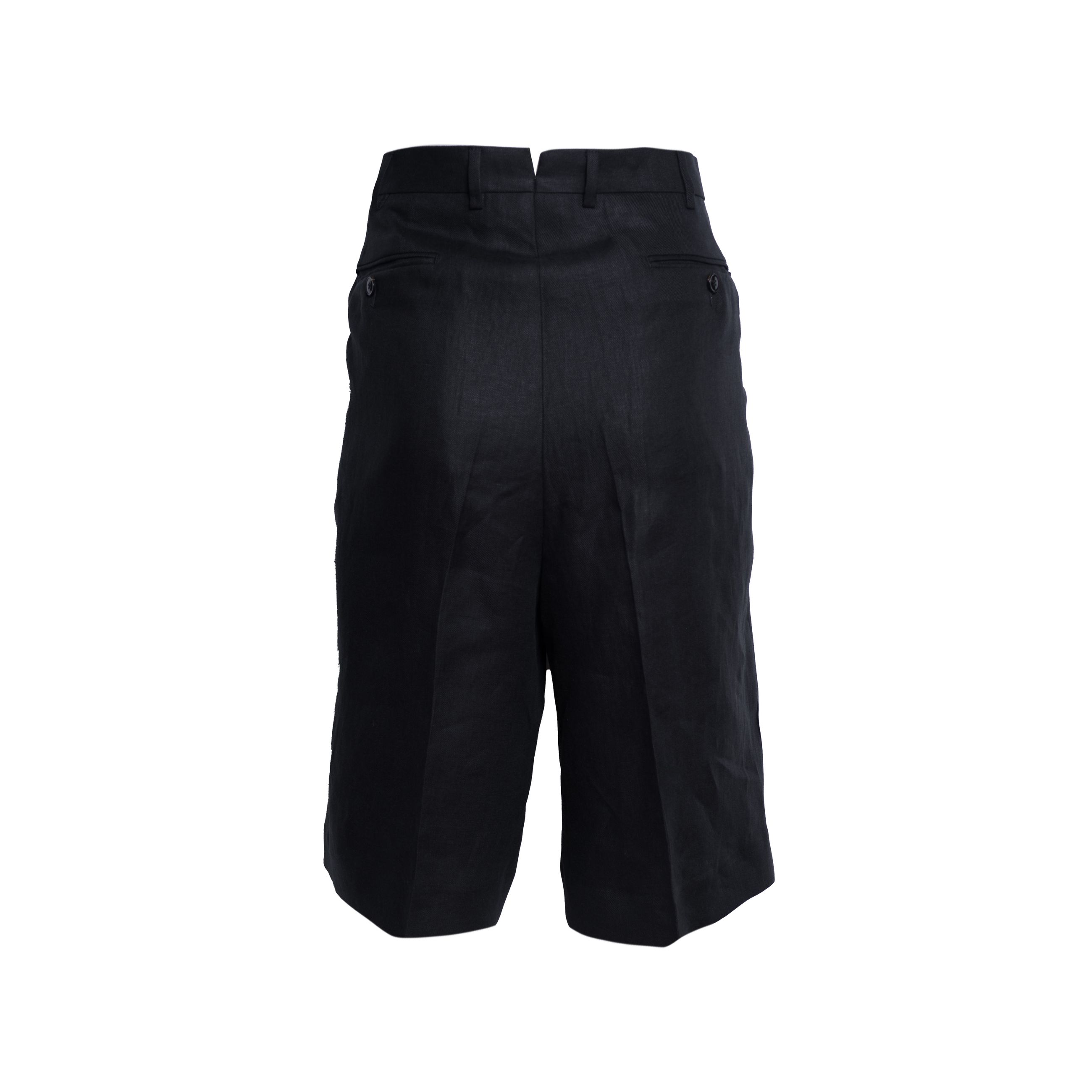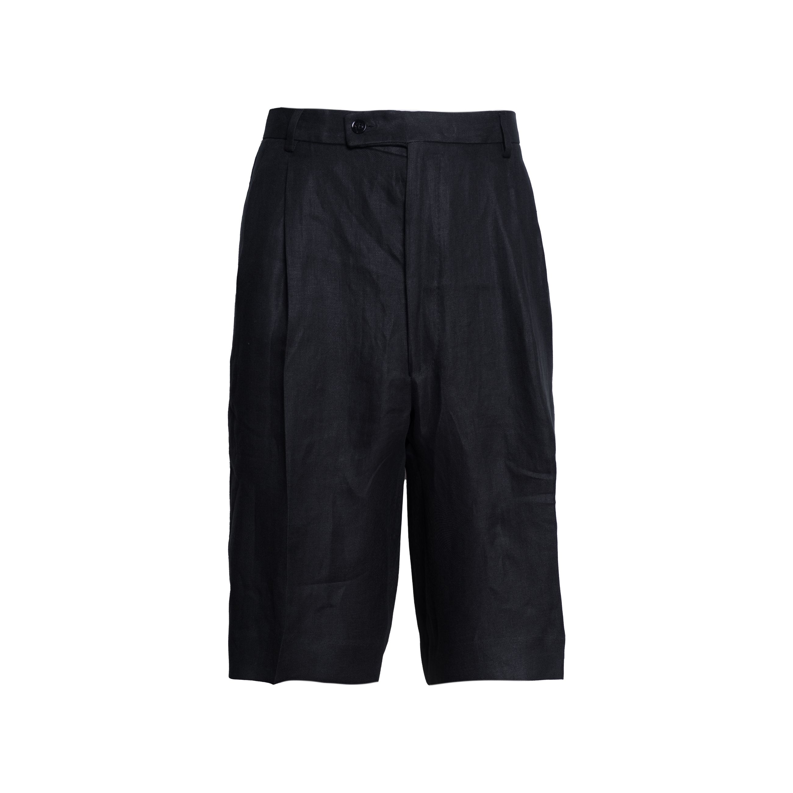 Bermuda da uomo GABRIELE PASINI. Modello doppia pences con tasca america, passanti per cintura, abbottonatura allungata, tasche posteriori a filetto con bottone in corno lucido. Vestibilità comoda e realizzato in fresco lino.