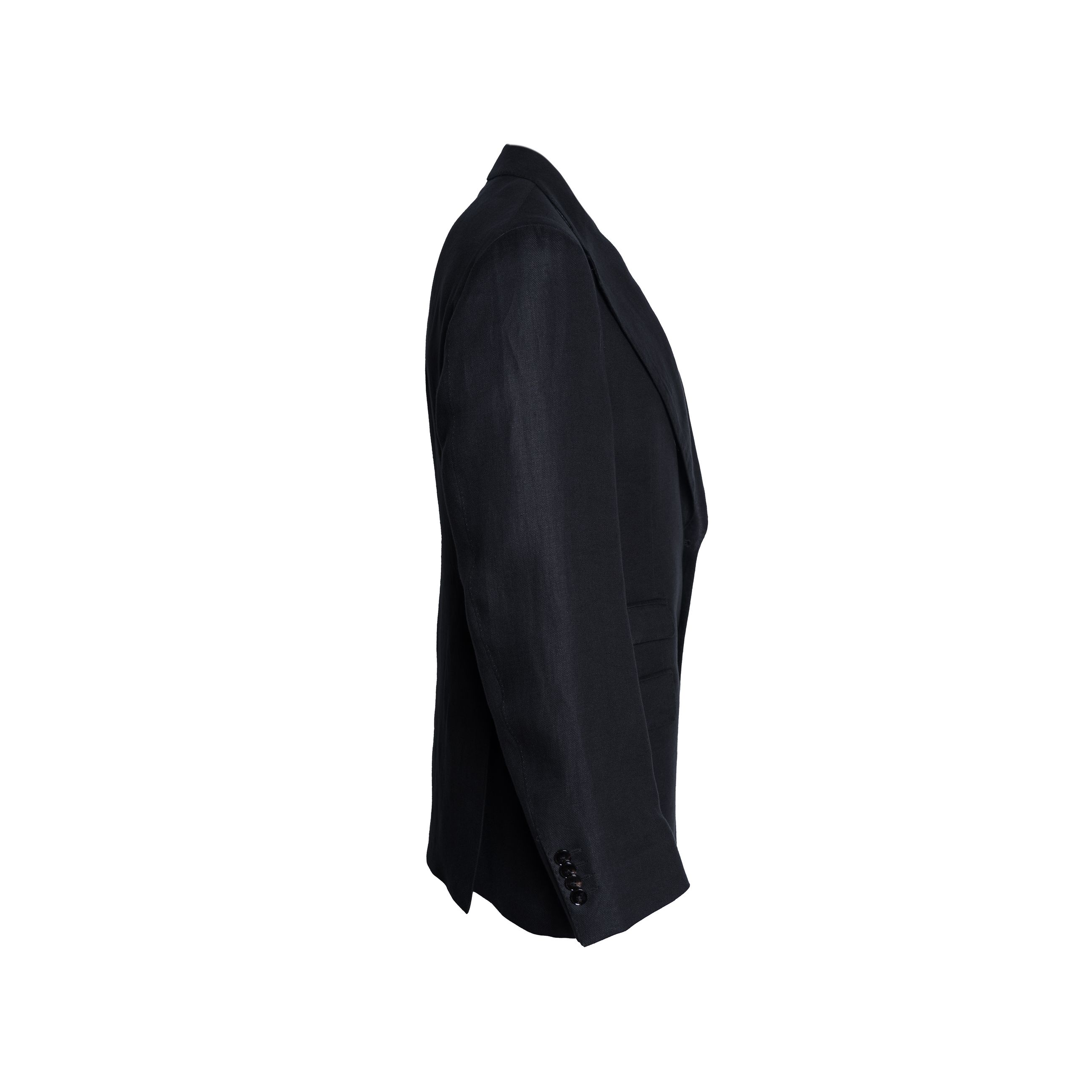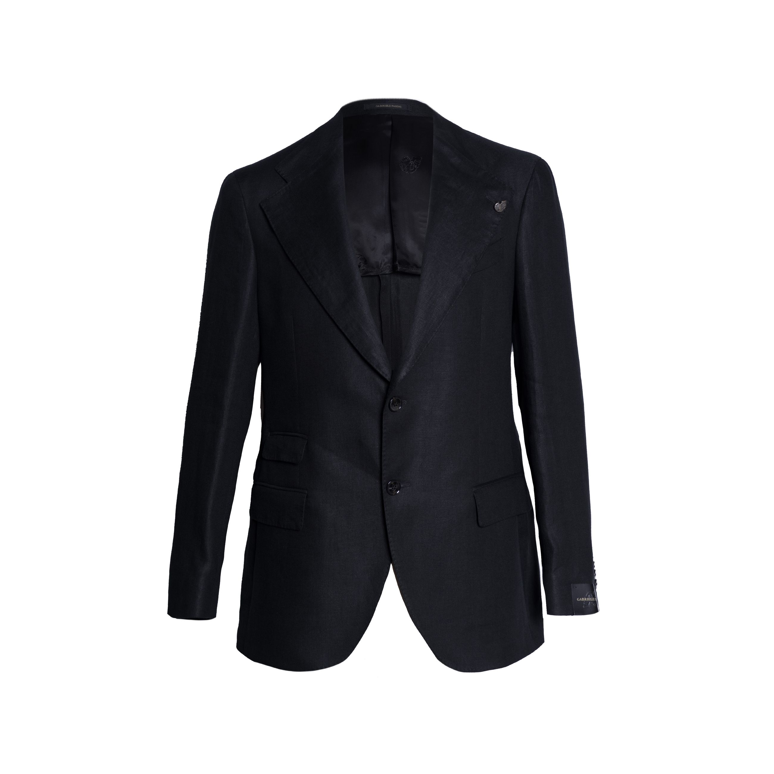 Giacca da uomo GABRIELE PASINI. Modello monopetto a due bottoni in corno lucido, semi foderata con tasche a pattina e ticket pocket, rever ampio a lancia, doppio spacco posteriore. Realizzata in pregiato lino.
