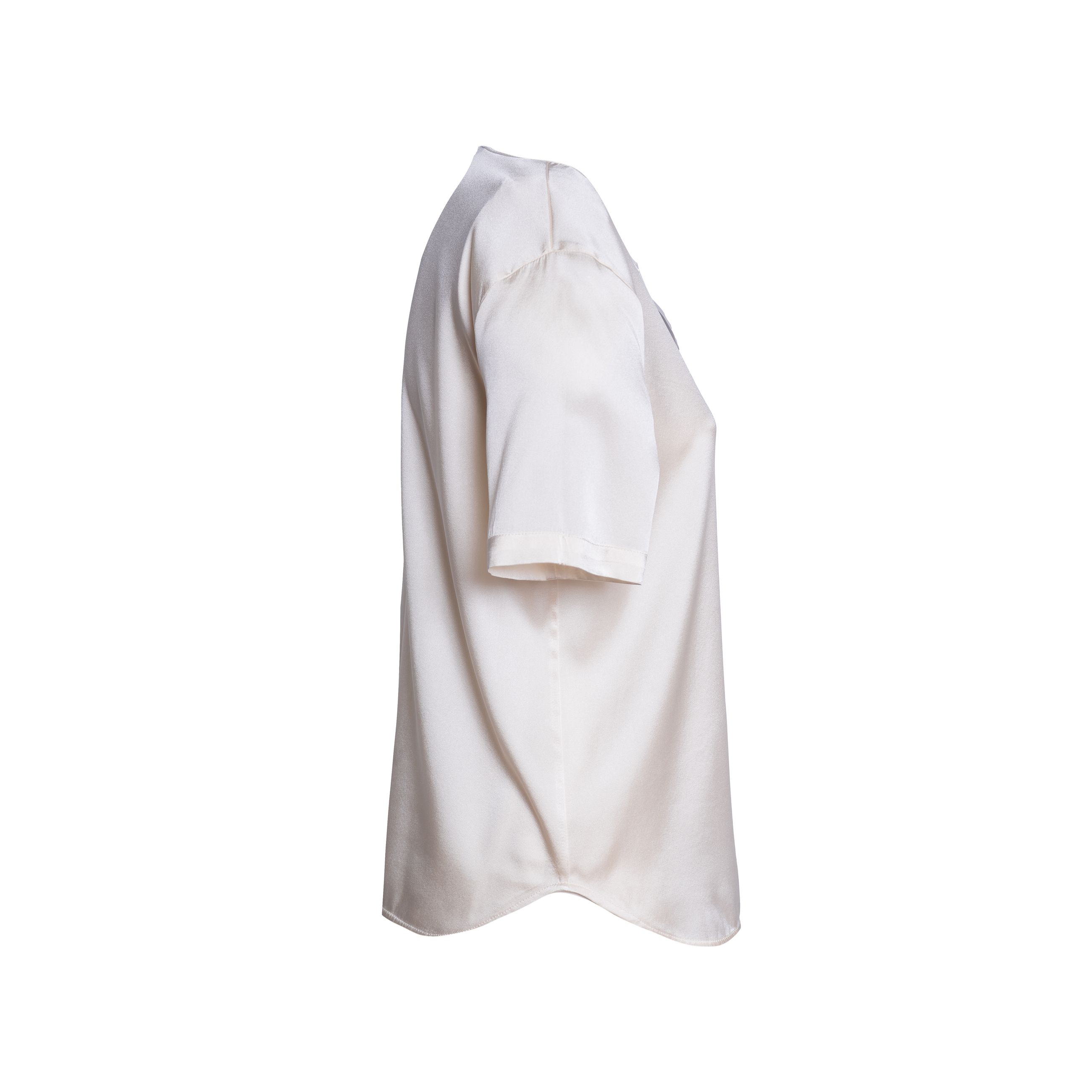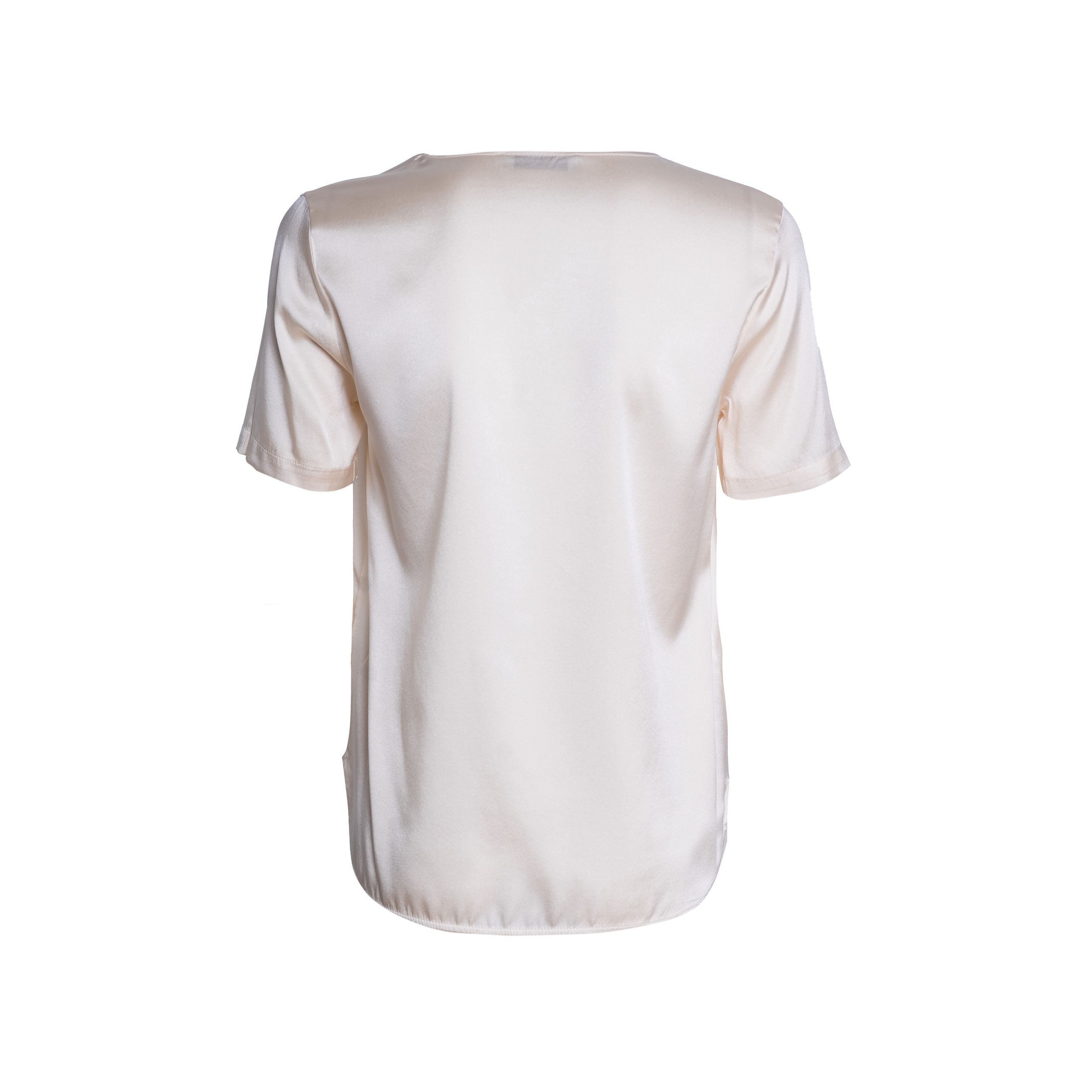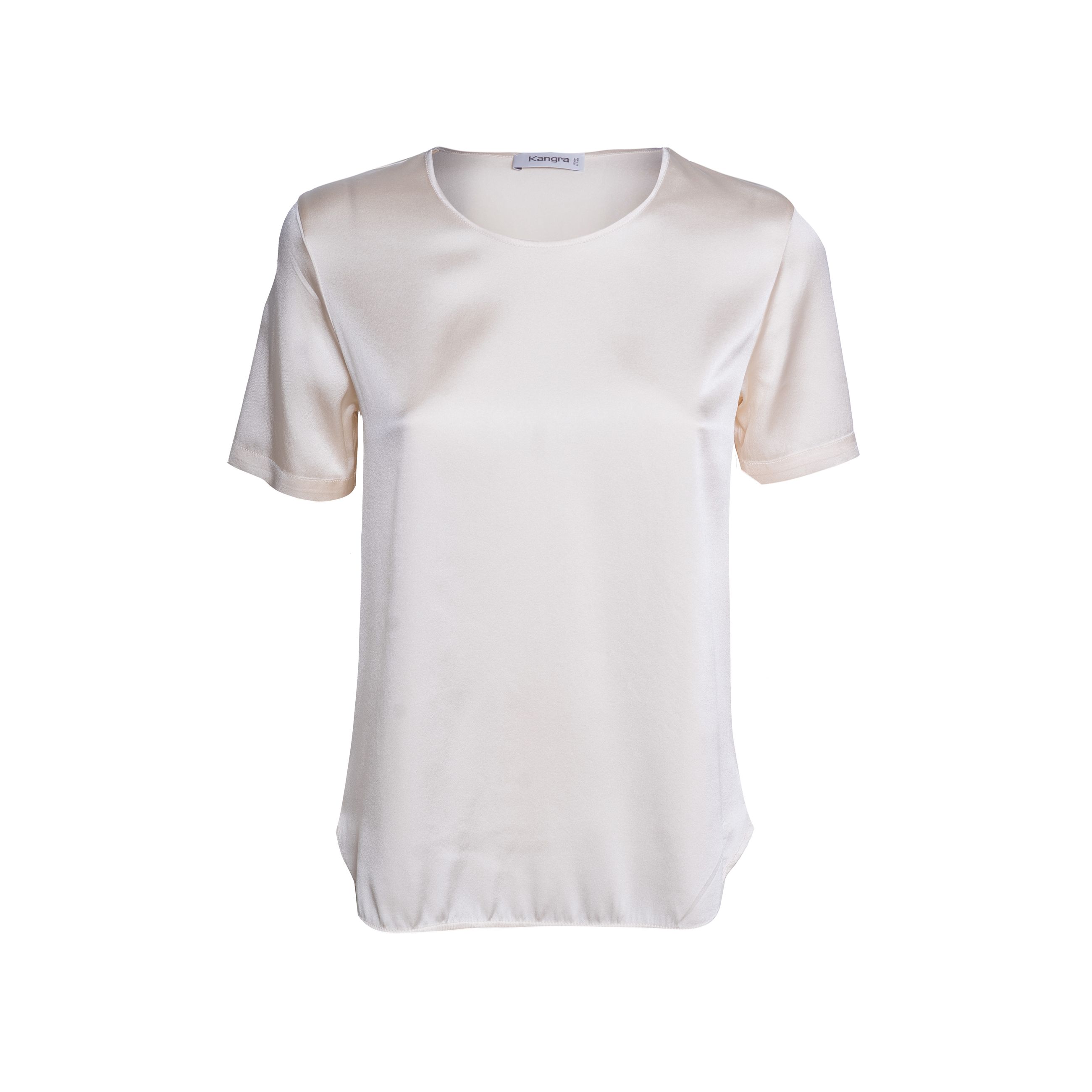 Maglia da donna KANGRA. Modello blusa girocollo, manica corta, vestibilità regular realizzata in seta elasticizzata che dona al capo eleganza ma con morbidezza e praticità.