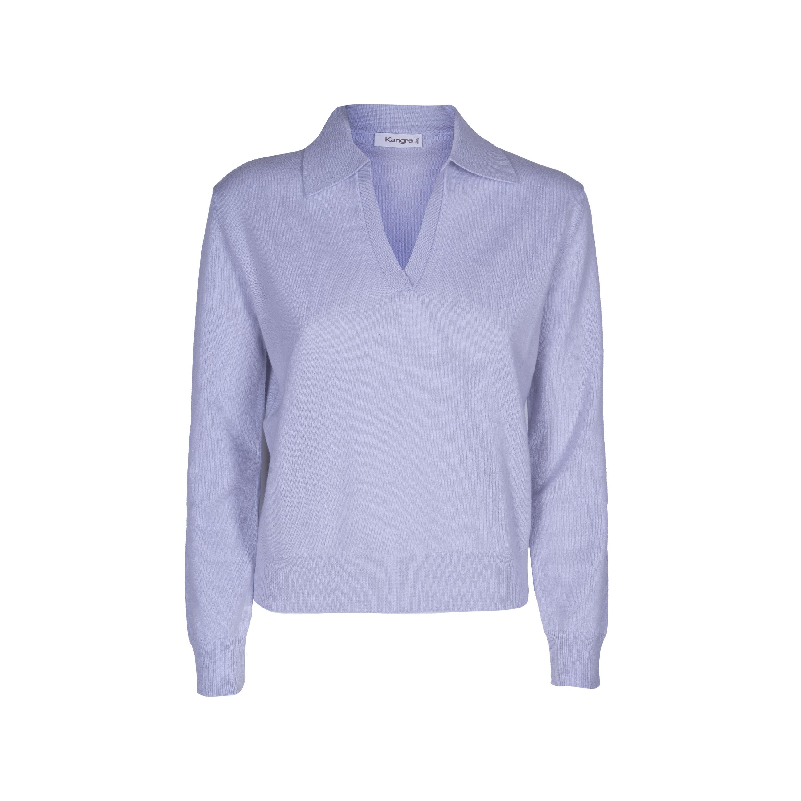Maglia da donna KANGRA. Modello a polo manica lunga, con colletto aperto a V senza bottoni. Realizzata in pregiata lana e cashmere. Regular fit con cannetté a costine sul fondo e sui polsi. Made in Italy.