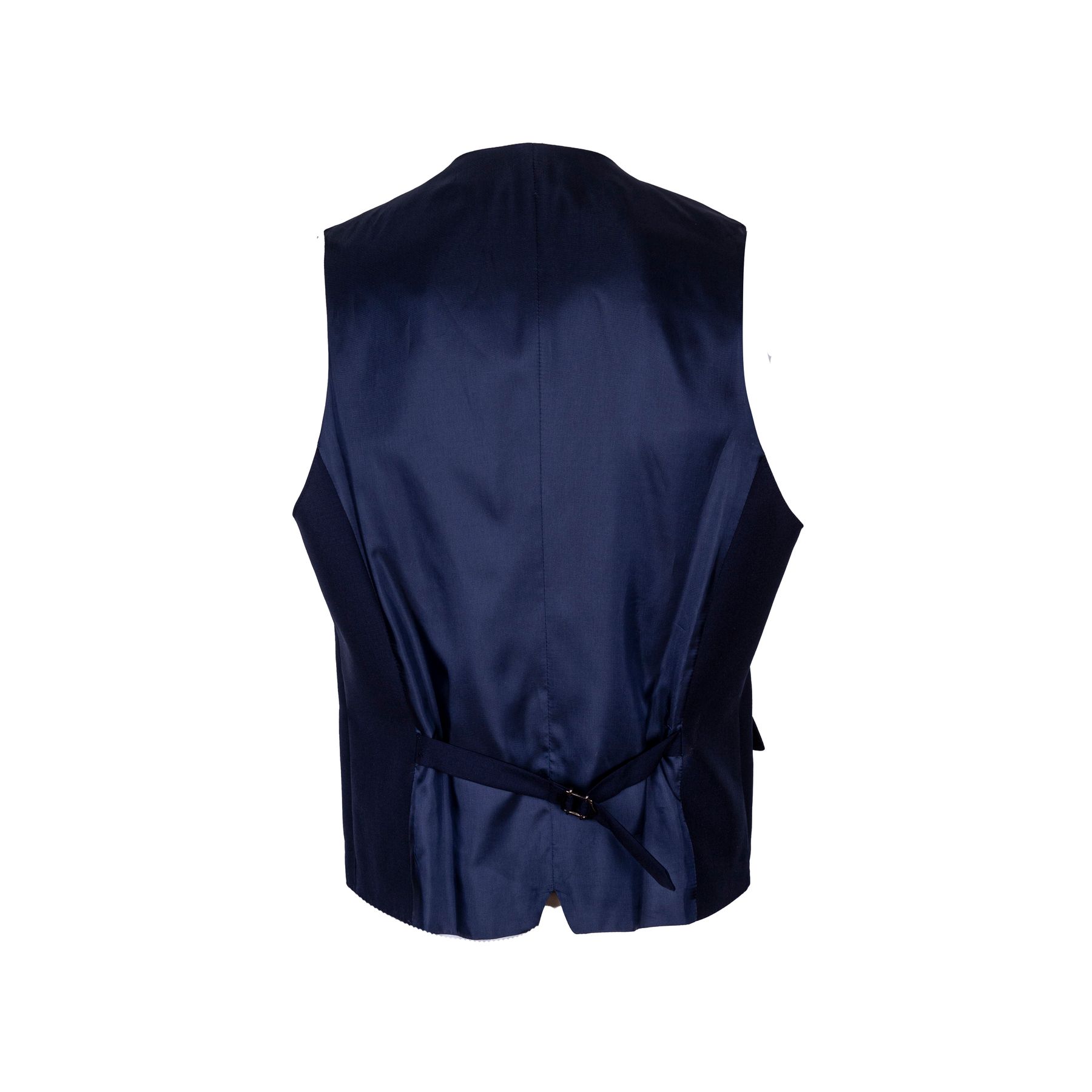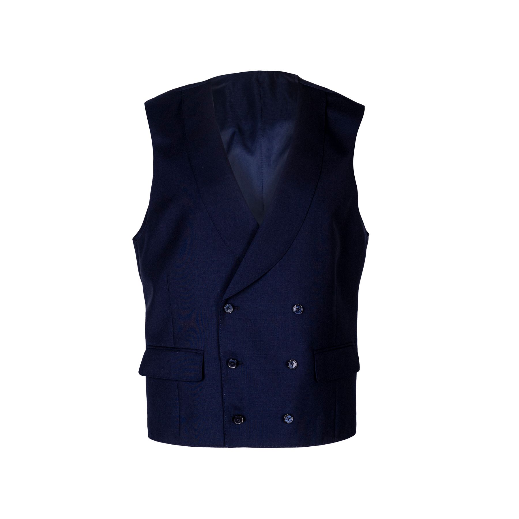 Abito completo 3 pezzi da uomo L.B.M. 1911. Giacca monopetto in fresco lana, due bottoni, rever a specchio. Drop 8. Slim fit. Pantalone slim senza pence. Gilet doppiopetto sciallato. Made in Italy.