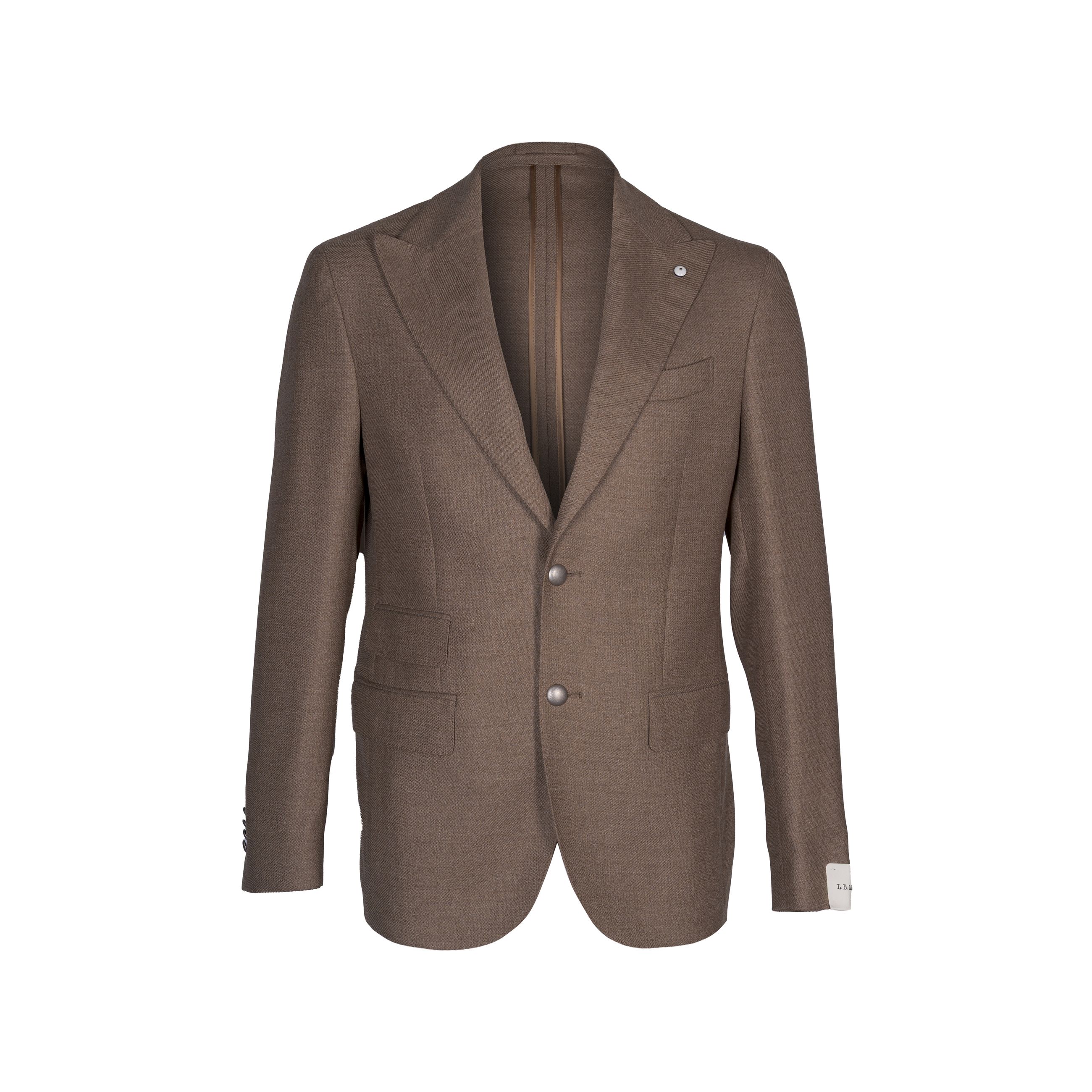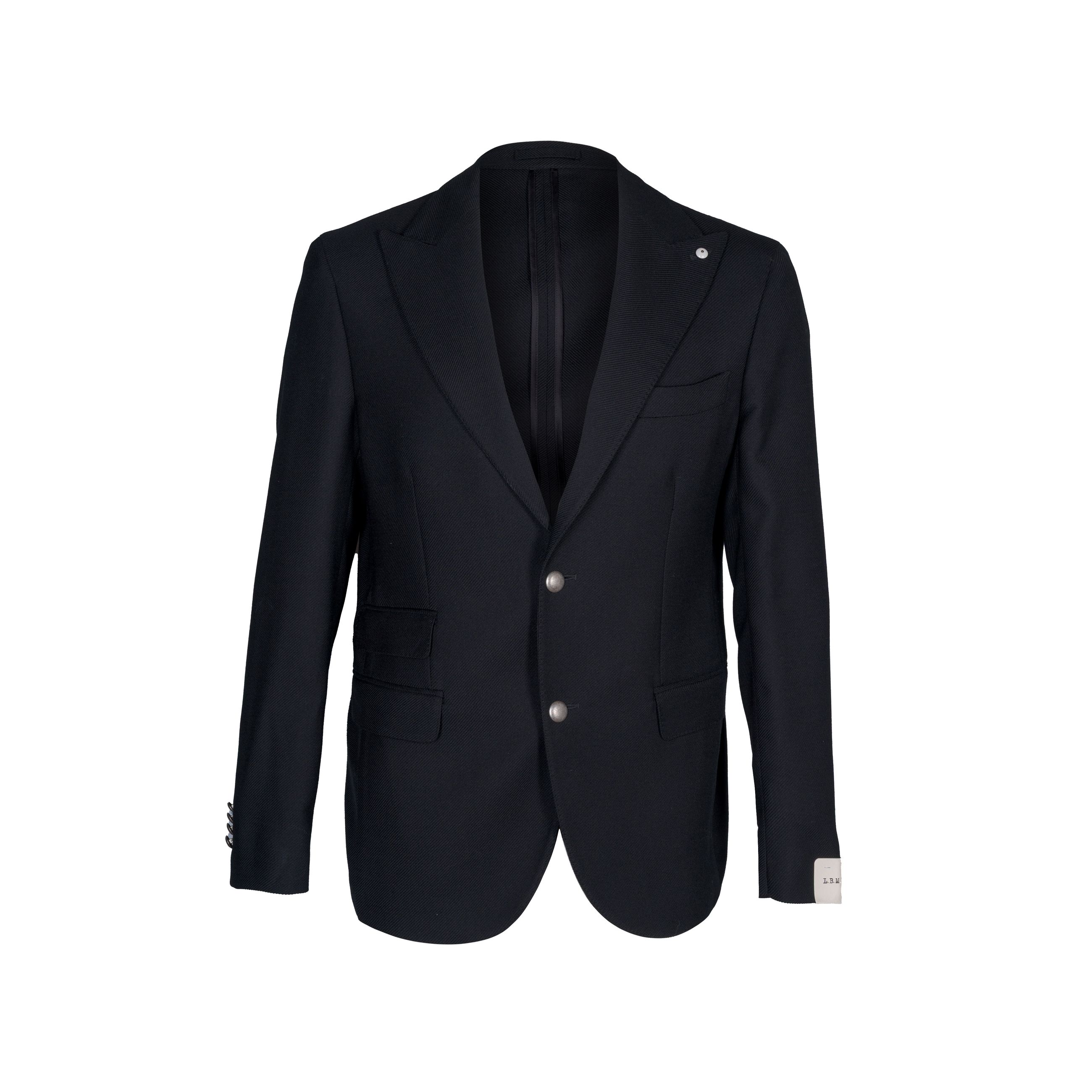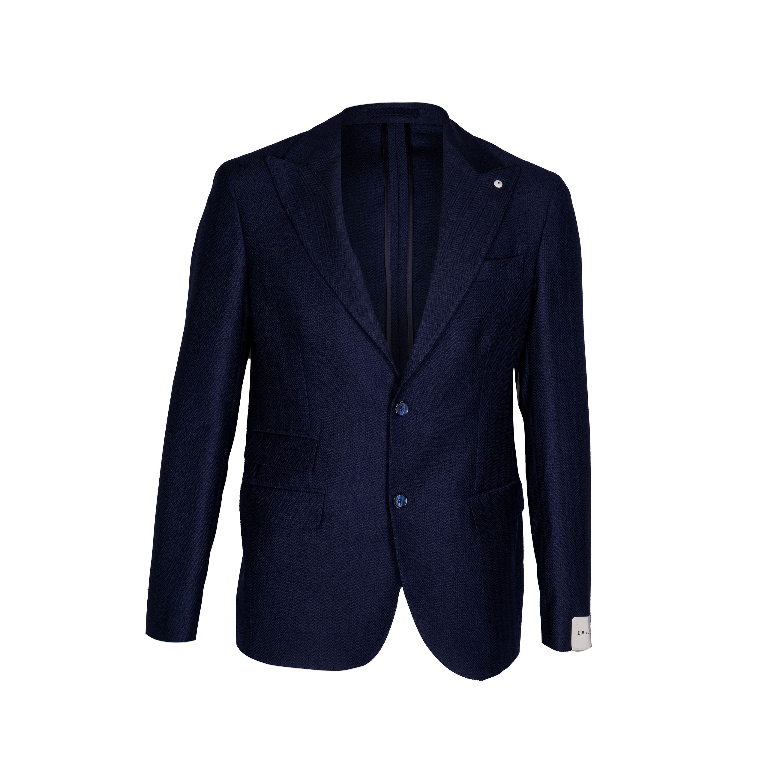 Giacca da uomo L.B.M 1911. Modello monopetto con rever a lancia, ticket pocket, completamente sfoderata realizzata in pregiata lana vergine con motivo cavalry, bottoni in metallo zigrinato e doppio spacco posteriore.