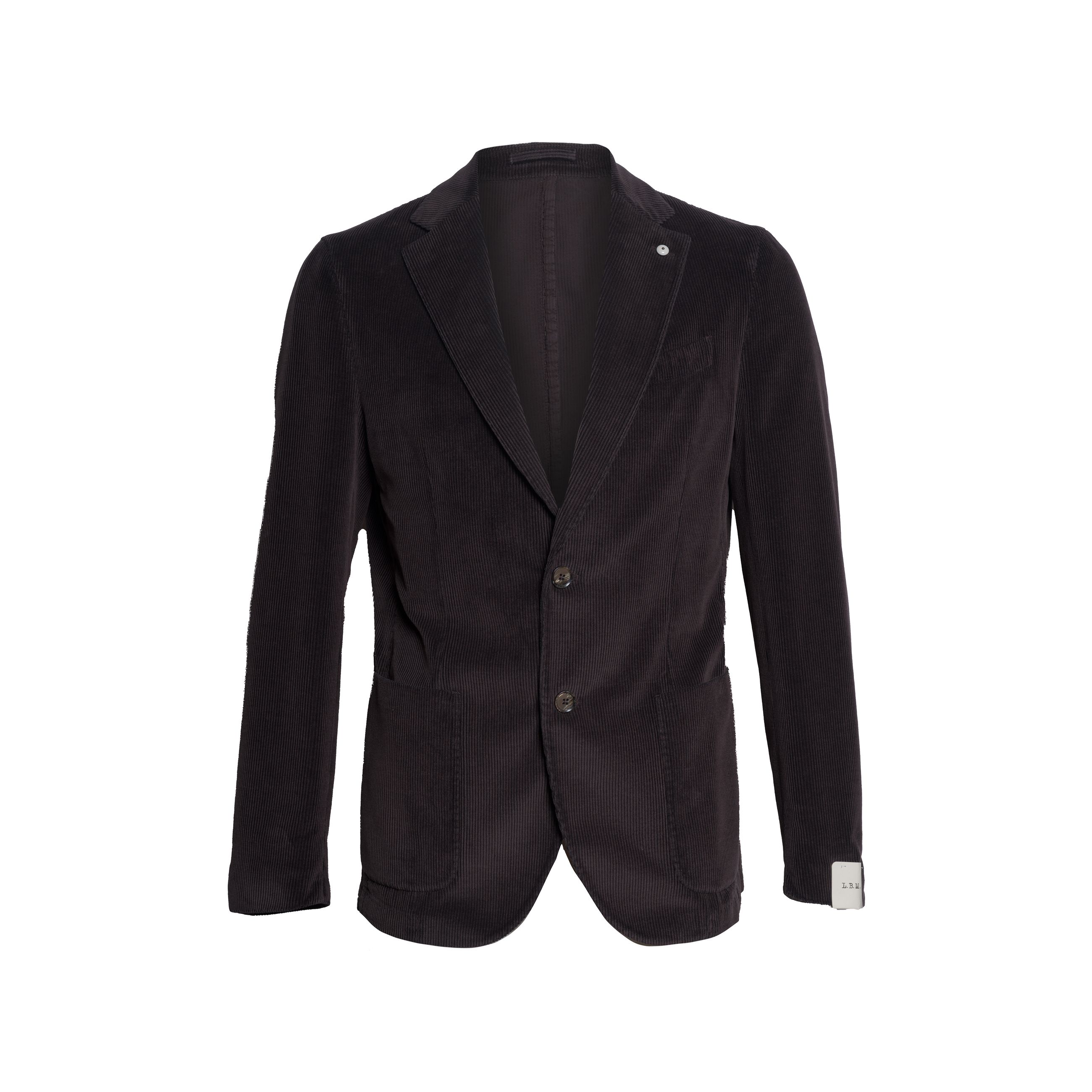 Giacca da uomo L.B.M 1911. Modello monopetto a due bottoni sfoderata con rever a specchio, tasca applicata, doppio spacco posteriore e vestibilità regular fit. Giacca realizzata in velluto di cotone a costa stretta. Bottoni in corno.