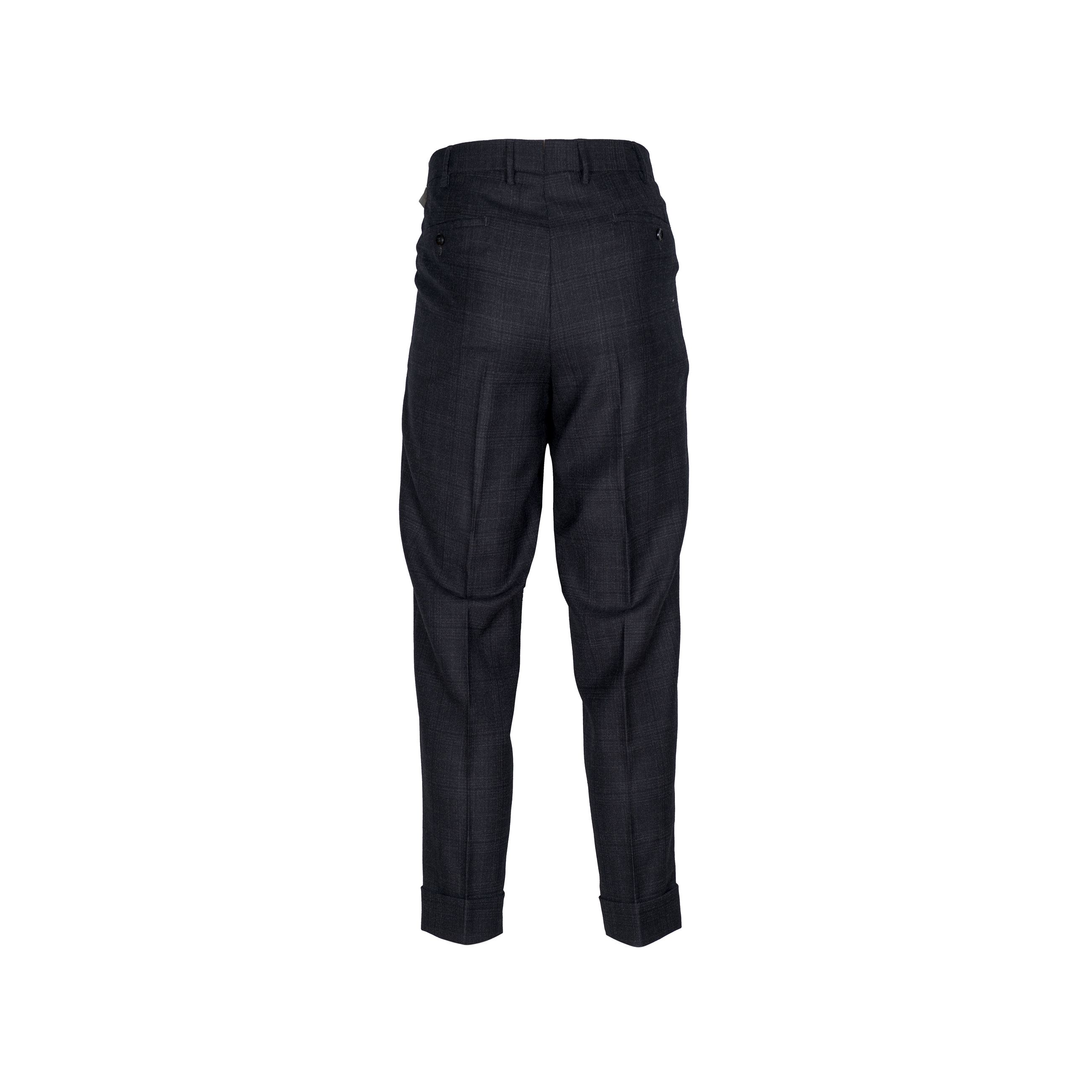 Pantalone da uomo L.B.M. 1911. Modello carrot fit con pences singola e ticket pocket realizzato in lana rasata con trama tono su tono effetto principe di Galles. Fondo 18 con risvolto. Made in Italy