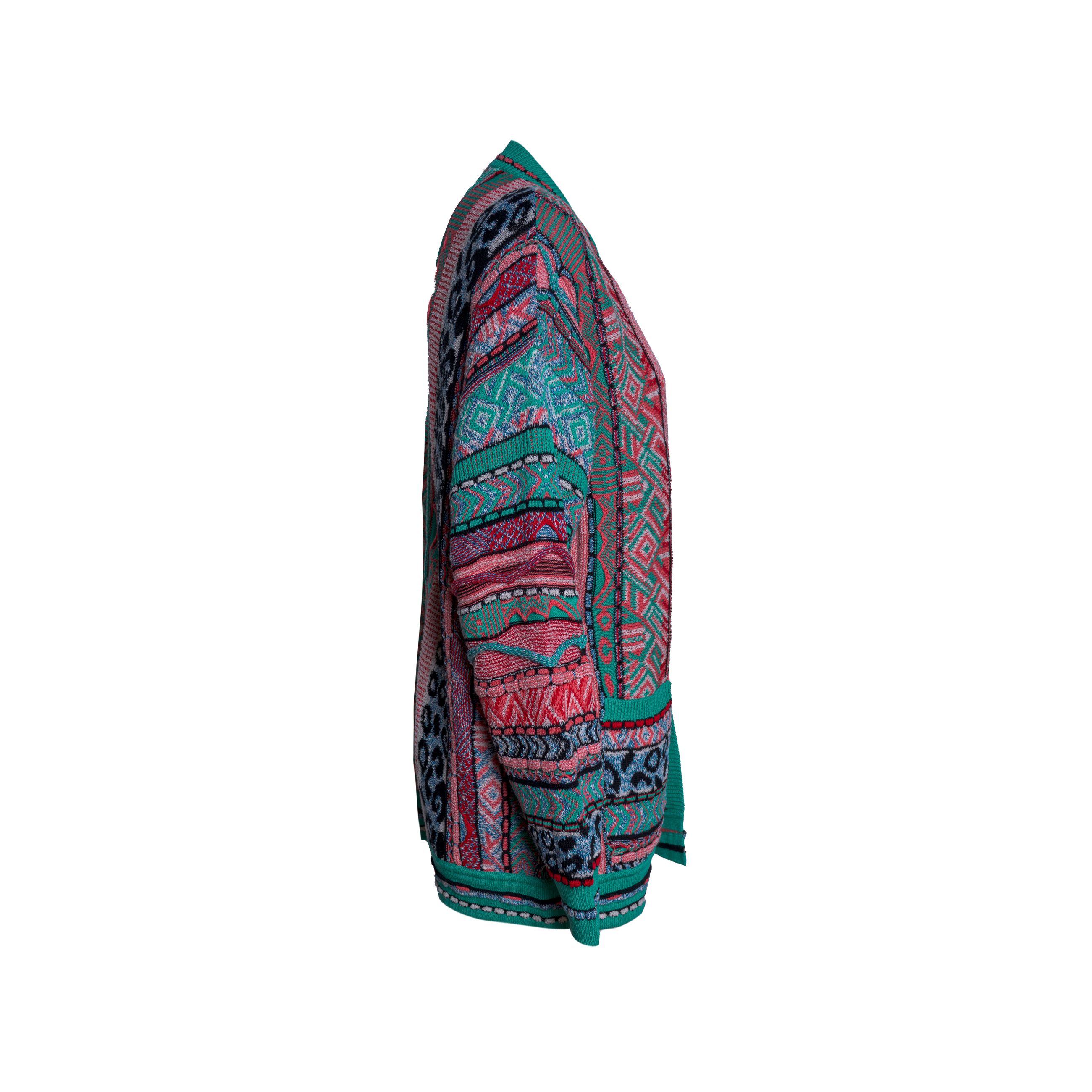 Maglia da donna LANEUS. Modello cardigan manica lunga, taschine laterali, realizzato in tessuto di cotone jacquard multicolor. Vestibilità over. Made in Italy.