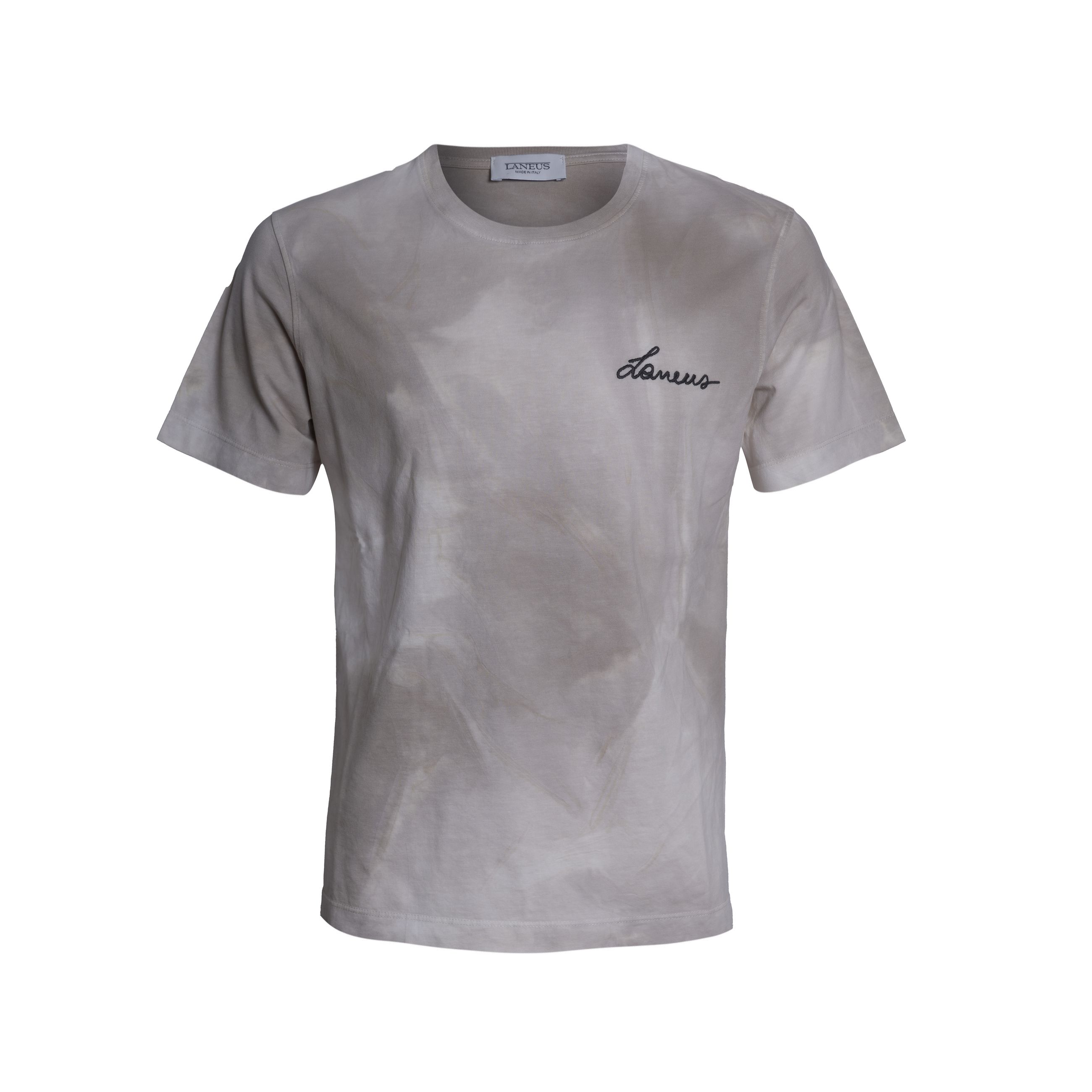 T-shirt da uomo LANEUS. Modello a girocollo manica corta, logo ricamato sul petto lato cuore. Realizzata in cotone fiammato che conferisce al capo un effetto materico. Vestibilità morbida. Made in Italy.
