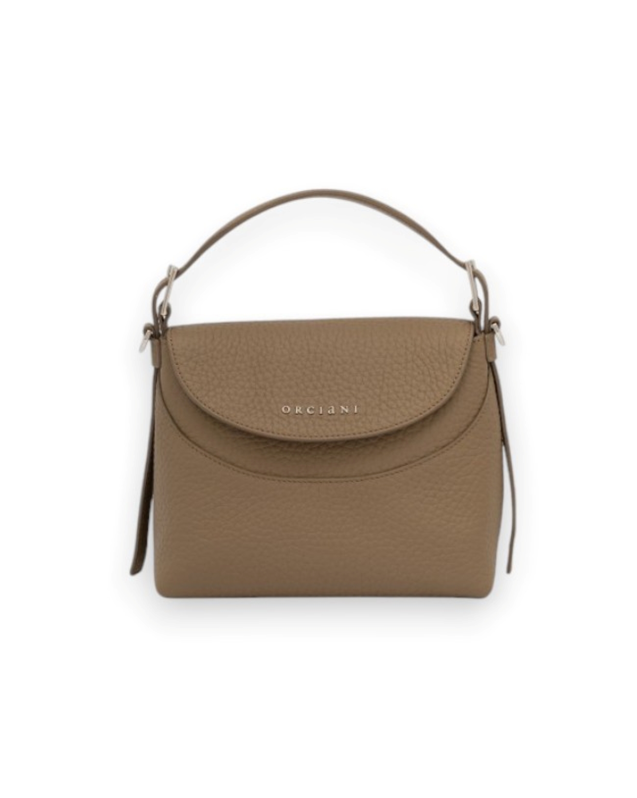 Borsa da donna ORCIANI. Modello Nana, a mano in pelle martellata, tracolla in pelle removibile, tasca interna con zip. Chiusura patta e magnete.