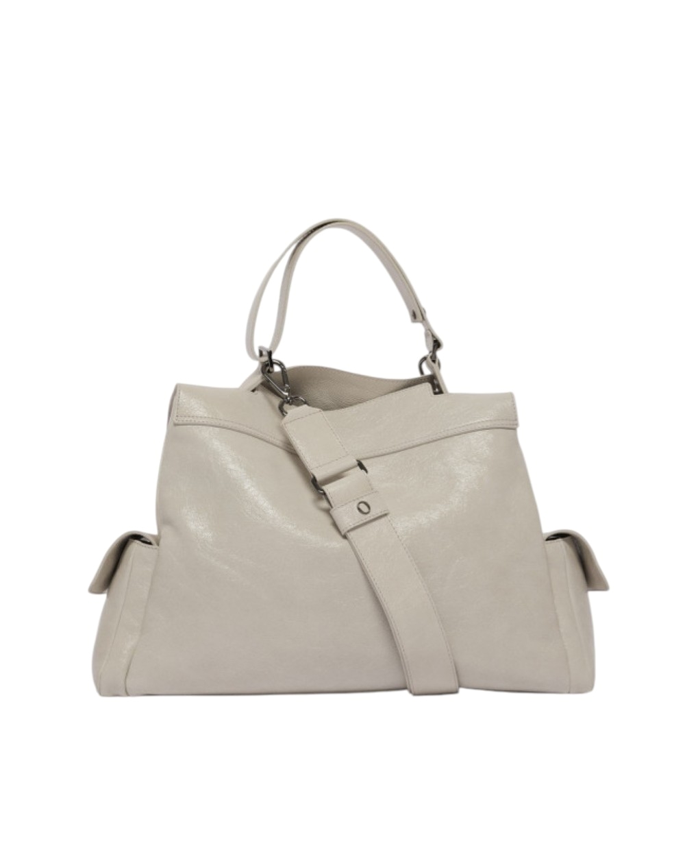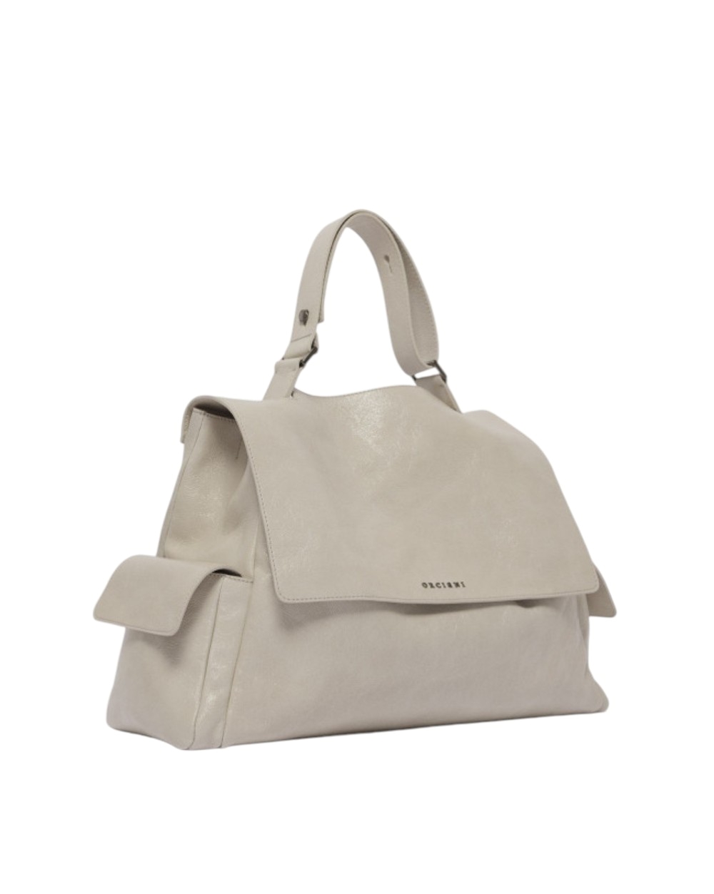 Borsa da donna ORCIANI. Modello Sveva Small Stark caratterizzata da due taschini esterni laterali con chiusura a patta magnetica, manico fisso a mano e tracolla regolabile. Realizzata in pelle lucida dall'effetto stropicciato. Taschino interno con zip.