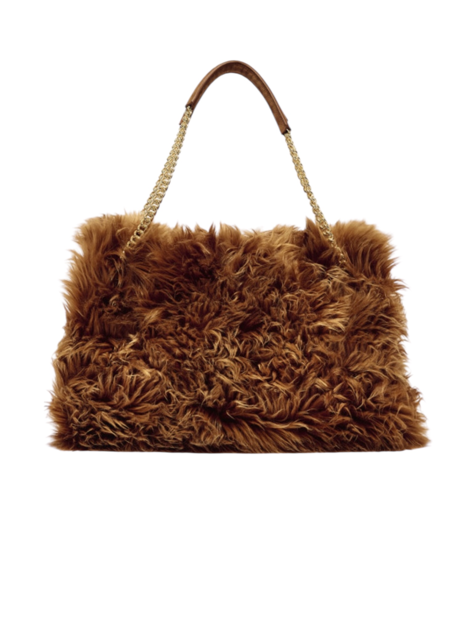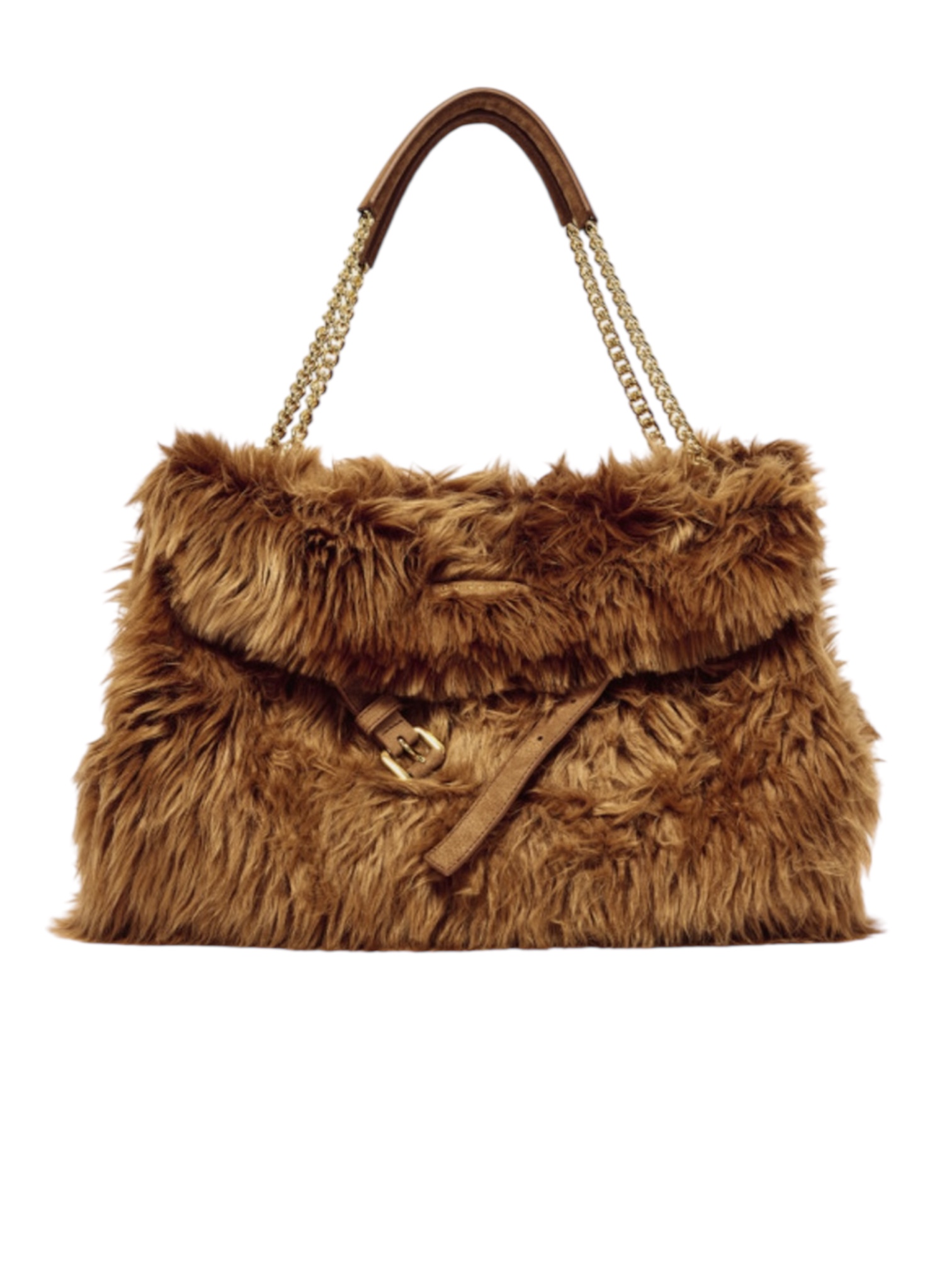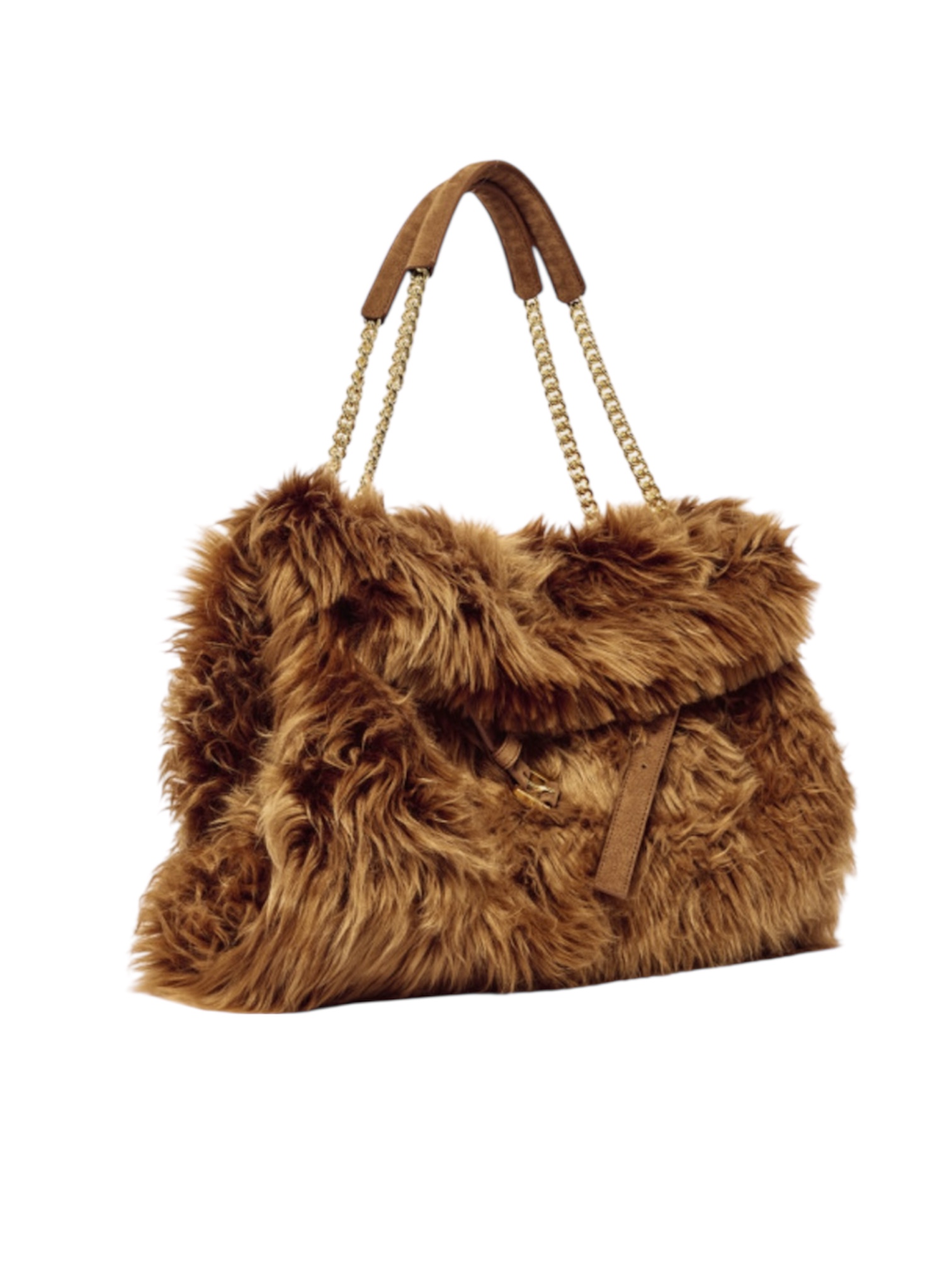 Borsa da donna ORCIANI. Modello Venus Wolf con il dettaglio della cintura frontale slacciata, la forma allungata (east - west) e la tracolla catena con finiture in oro e spallaccio in nabuk, zip interna. Chiusura a patta con bottone automatico. Realizzata in pelliccia. Made in Italy.