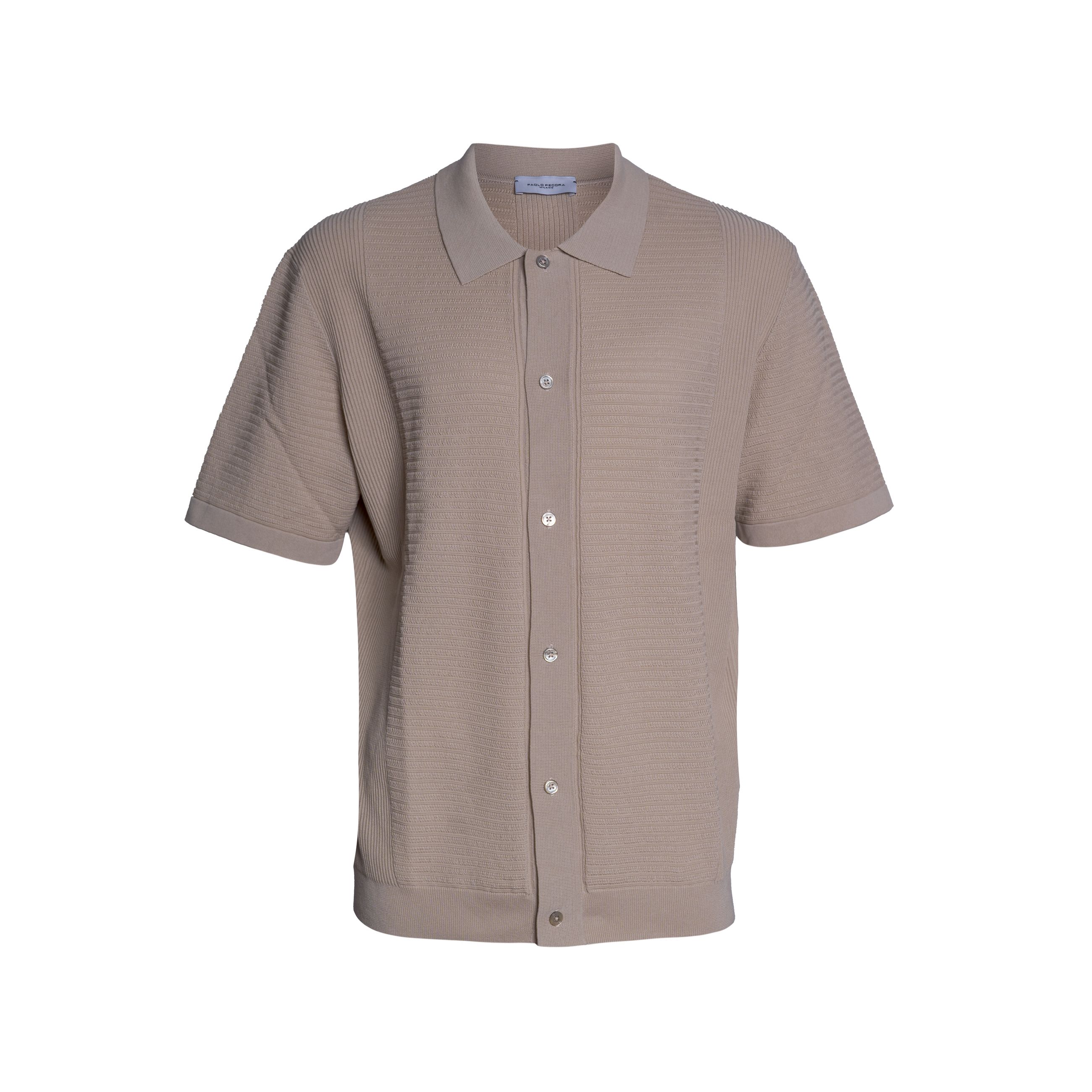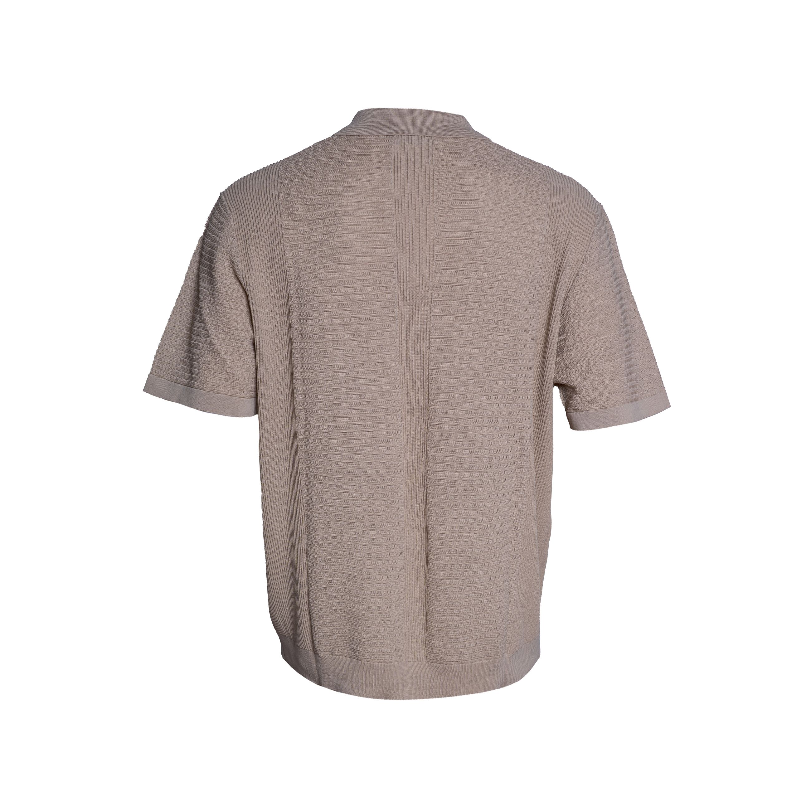 Maglia da uomo PAOLO PECORA. Modello a camicia manica corta, con colletto e bottoni, realizzata in cotone operato con due differenti punti che conferiscono al capo linee geometriche. Vestibilità boxy. Made in Italy.