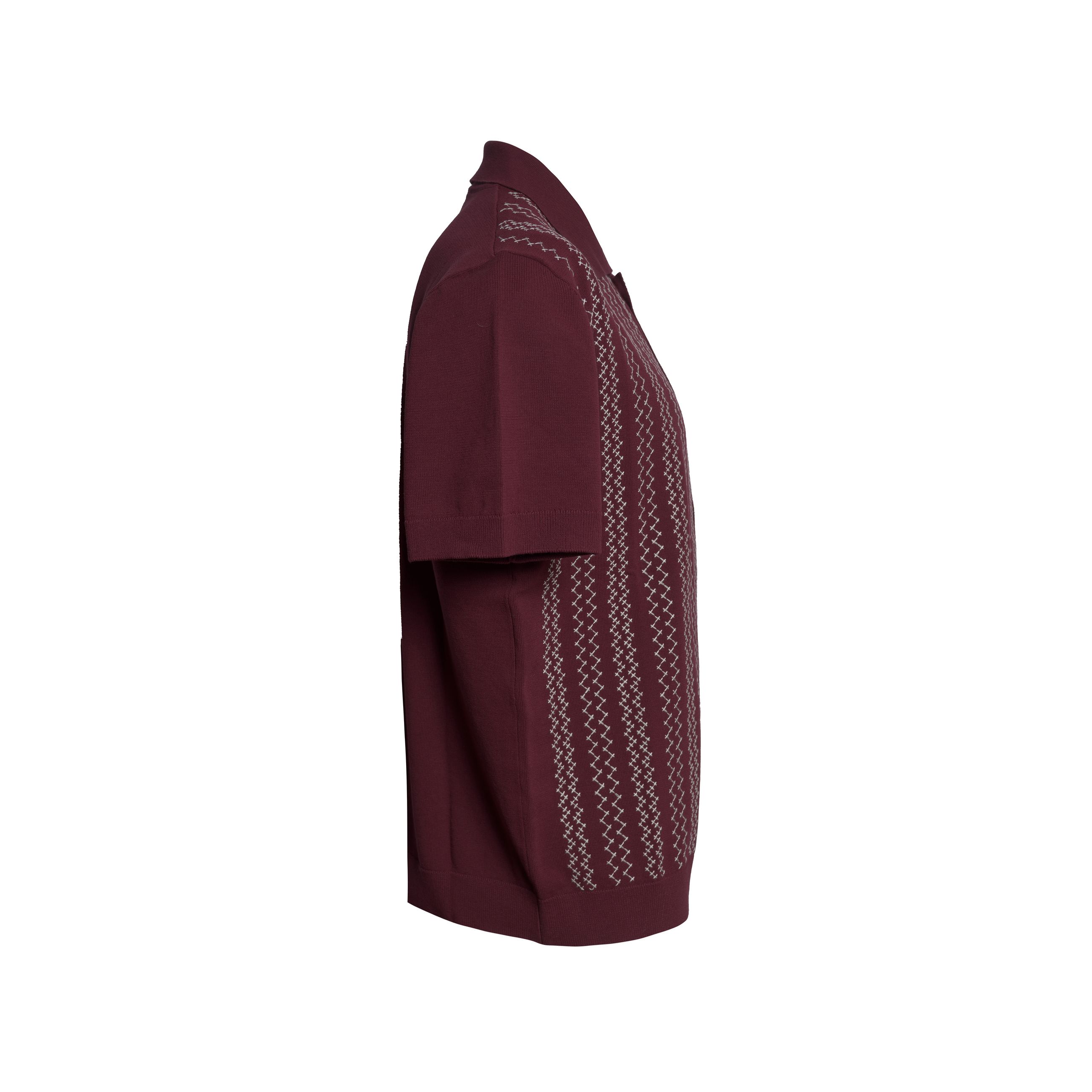 Camicia da uomo PAOLO PECORA. Modello a manica corta, realizzato in cotone con la parte anteriore impreziosita da un'esclusiva lavorazione a ricamo a contrasto bianco con un motivo grafico a zigzag, mentre presenta un design unito e liscio, senza ricami sul lato posteriore, colletto a camicia e chiusura con bottoni, vestibilità regular. Made in Italy.
