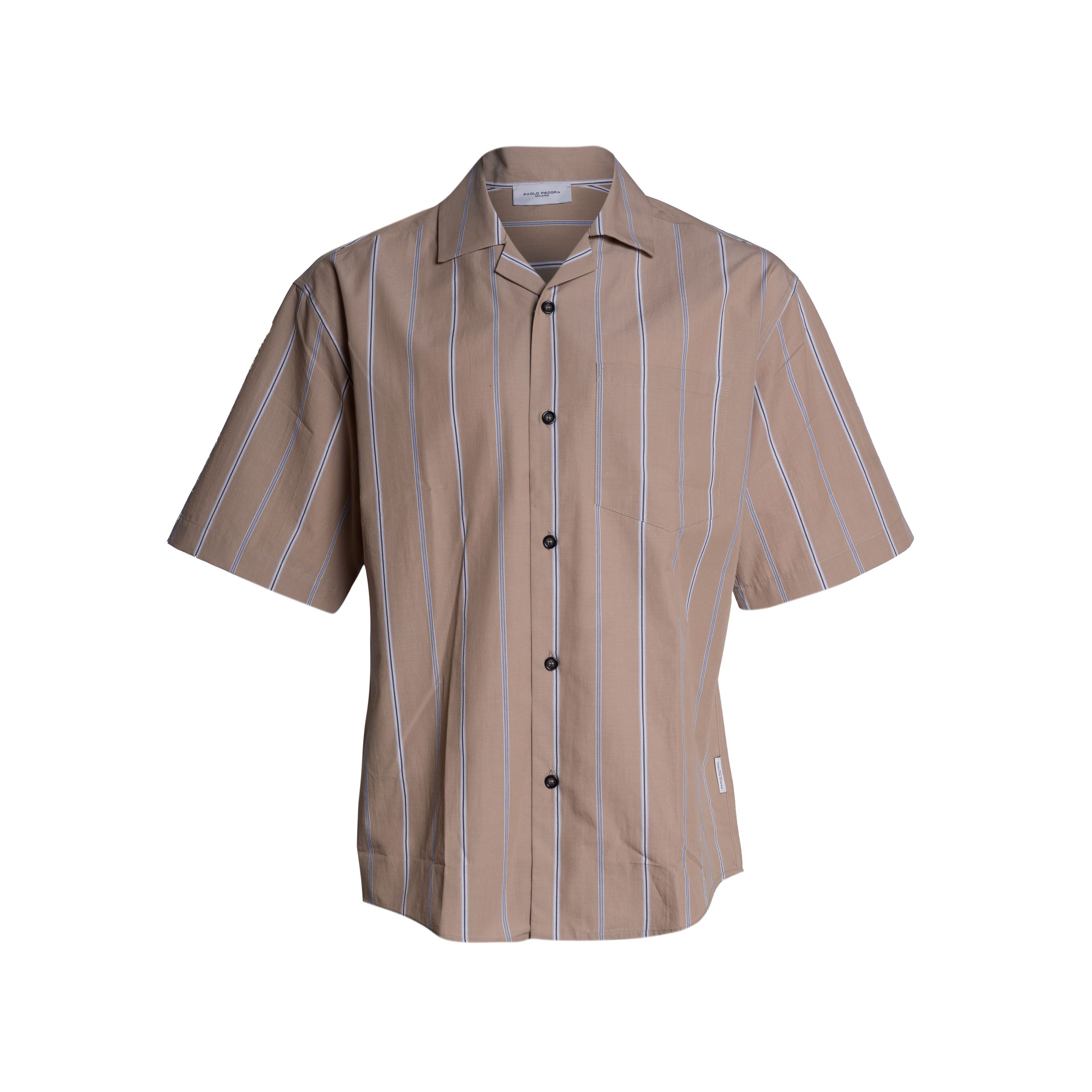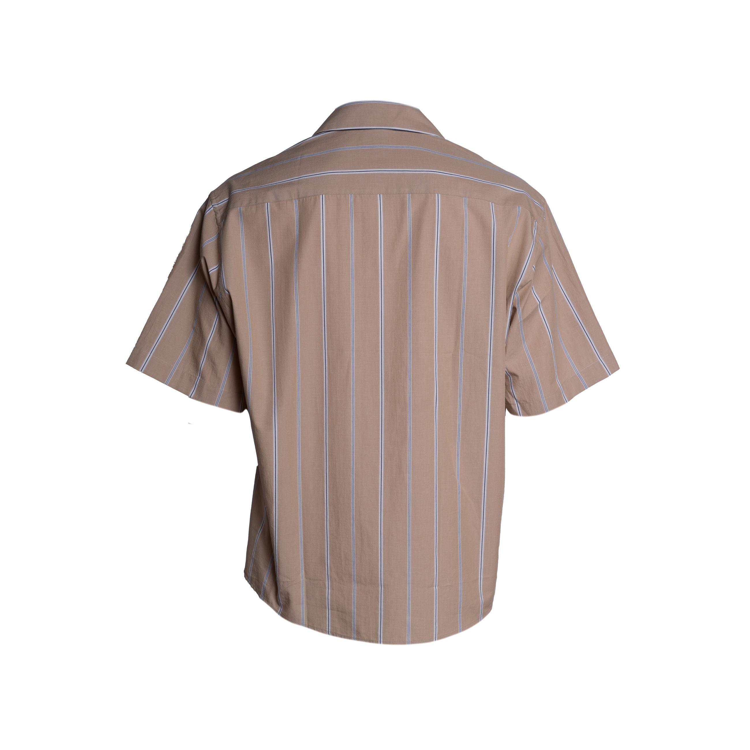 Camicia da uomo PAOLO PECORA. Modello a manica corta, con collo rever aperto, taschino applicato sul petto lato cuore, realizzata in fresco cotone. Vestibilità boxi.