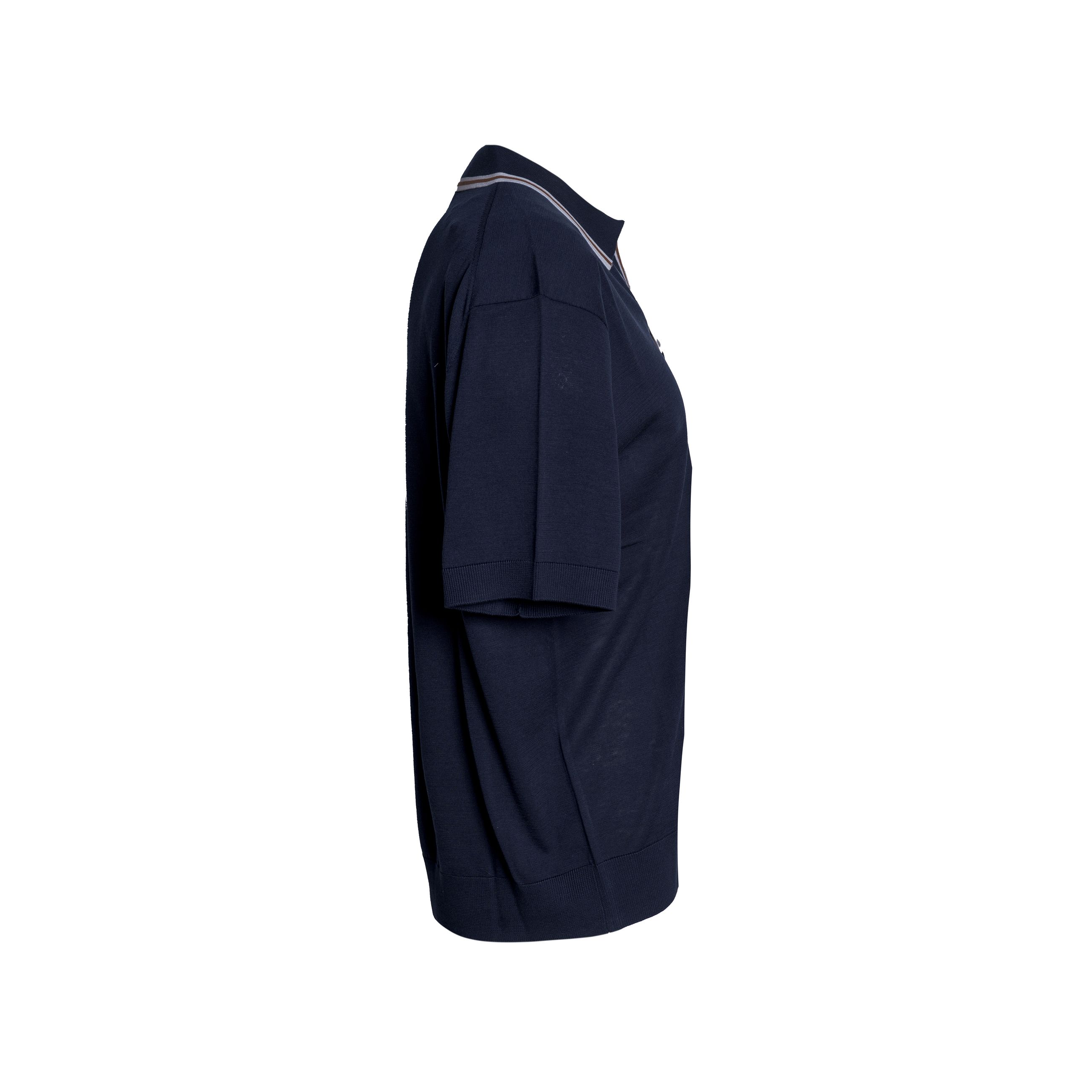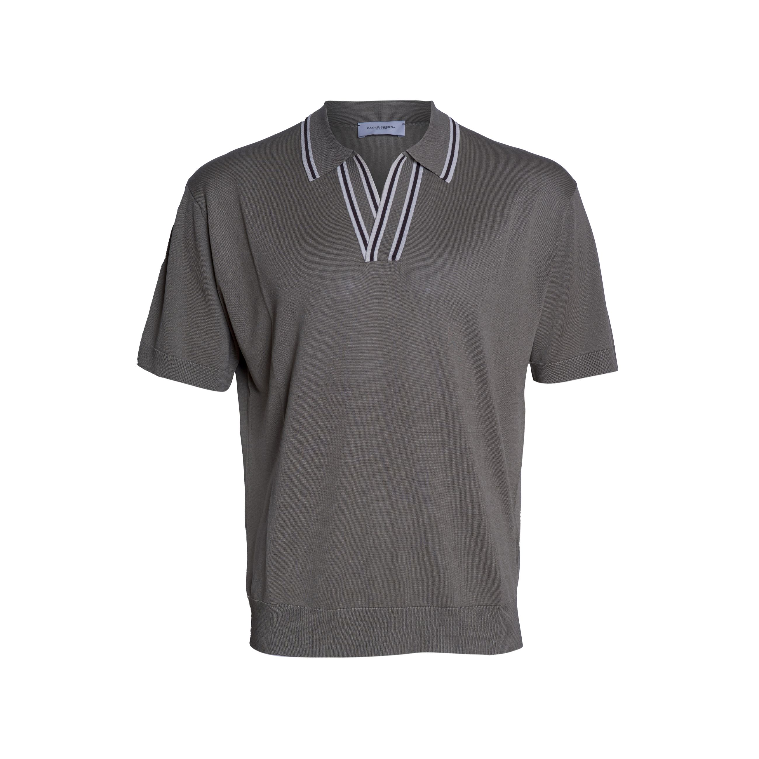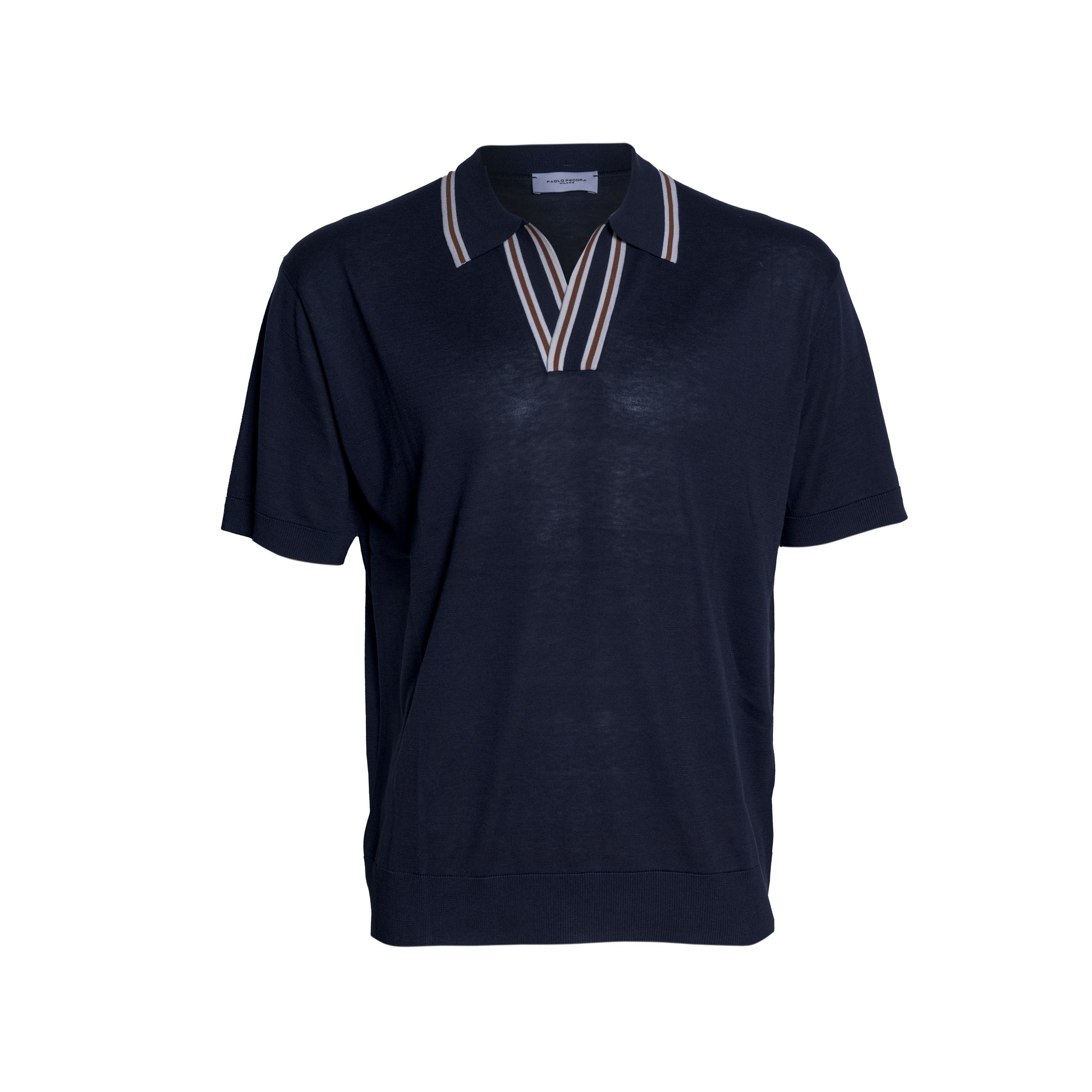 Maglia da uomo PAOLO PECORA. Modello a polo manica corta, scollo a V senza bottoni con profilatura a contrasto, realizzata in pregiata seta e cotone dalla finezza 16. Vestibilità regular. Made in Italy.