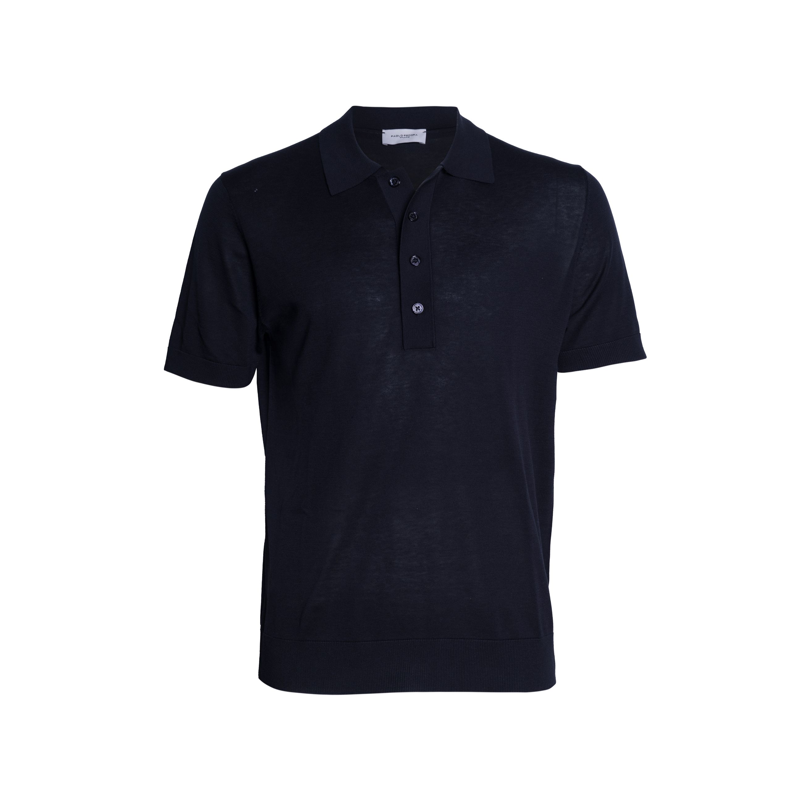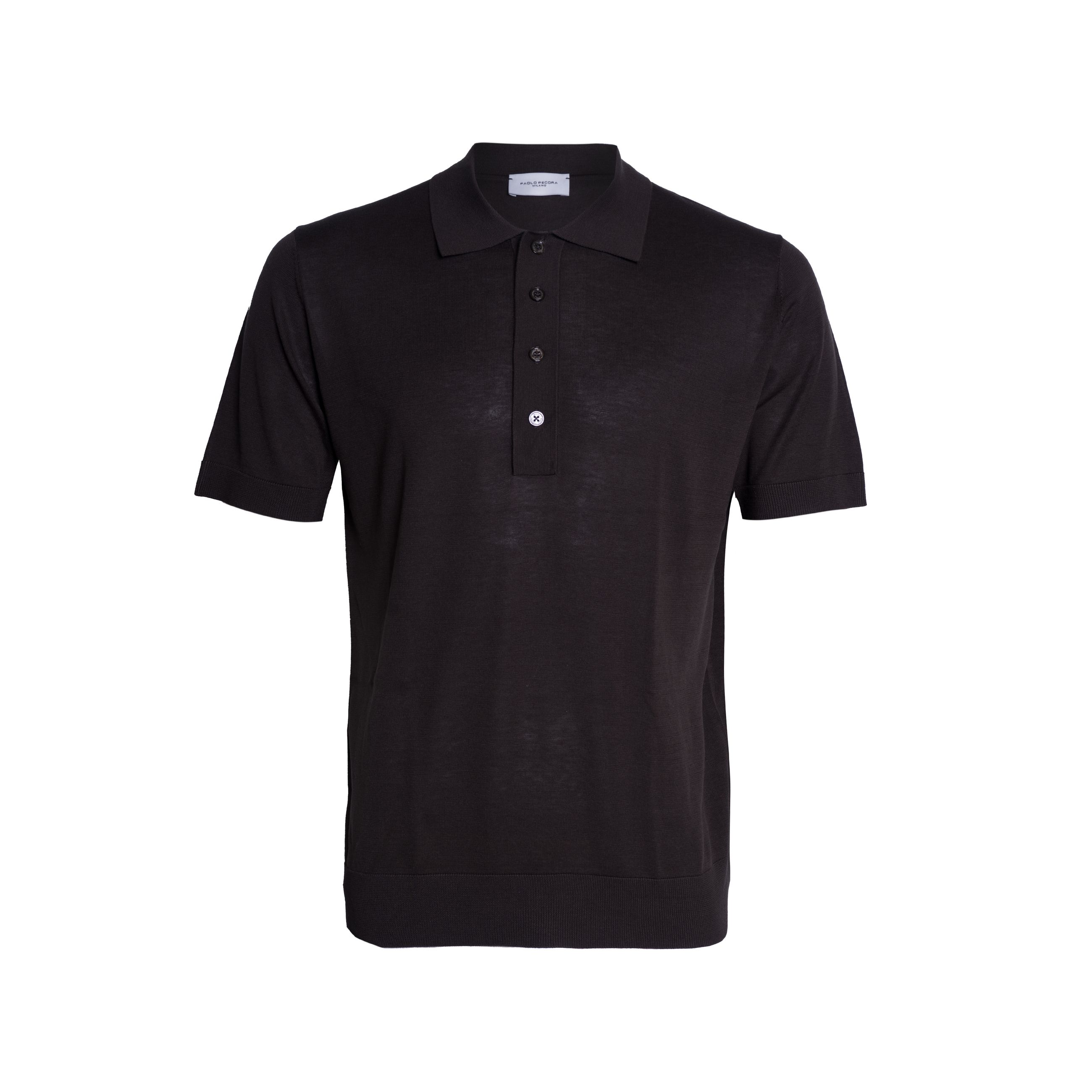 Maglia da uomo PAOLO PECORA. Modello polo a quattro bottoni, manica corta, vestibilità regular, realizzata in pregiata seta e cotone nella finezza 16.