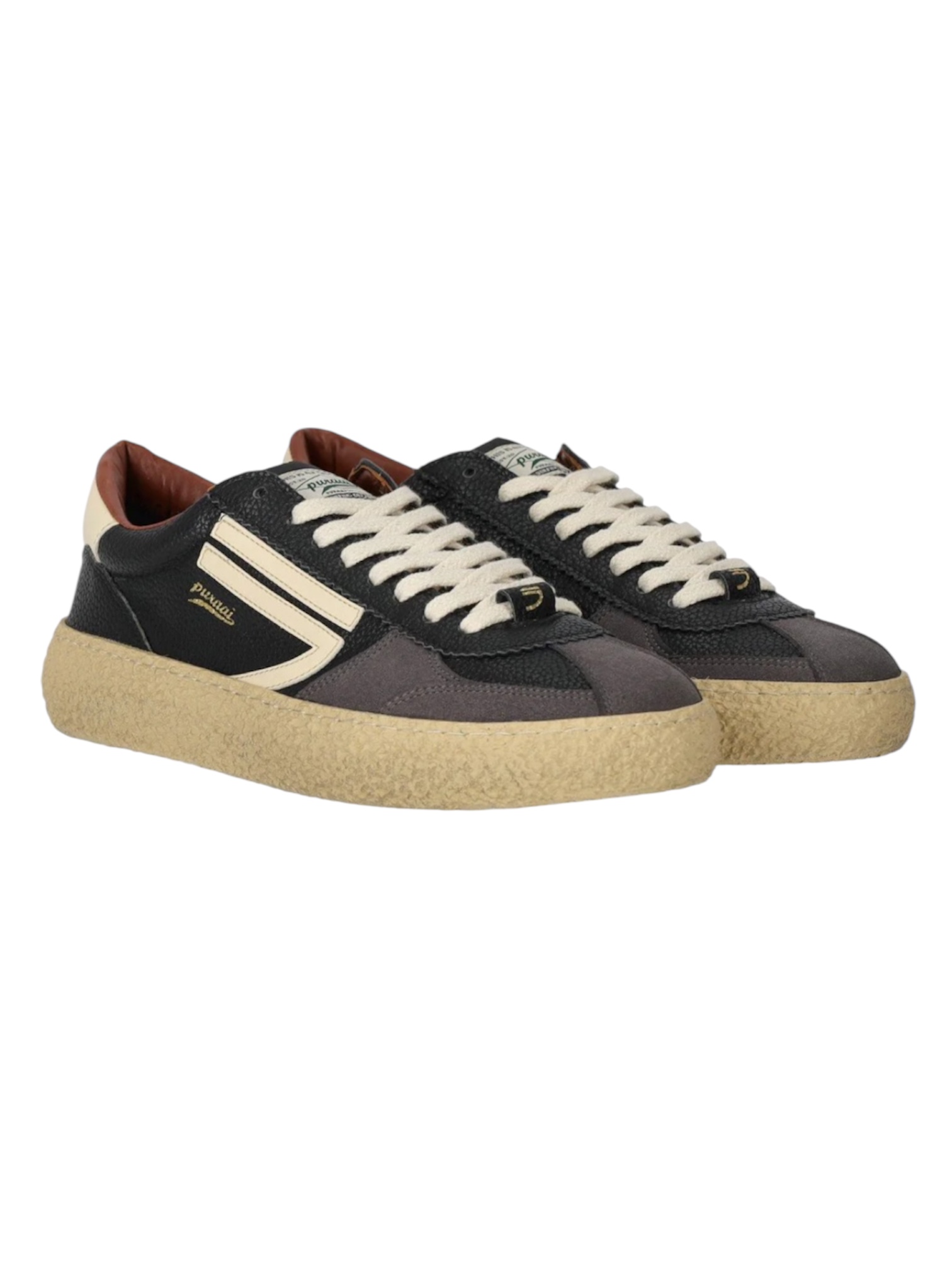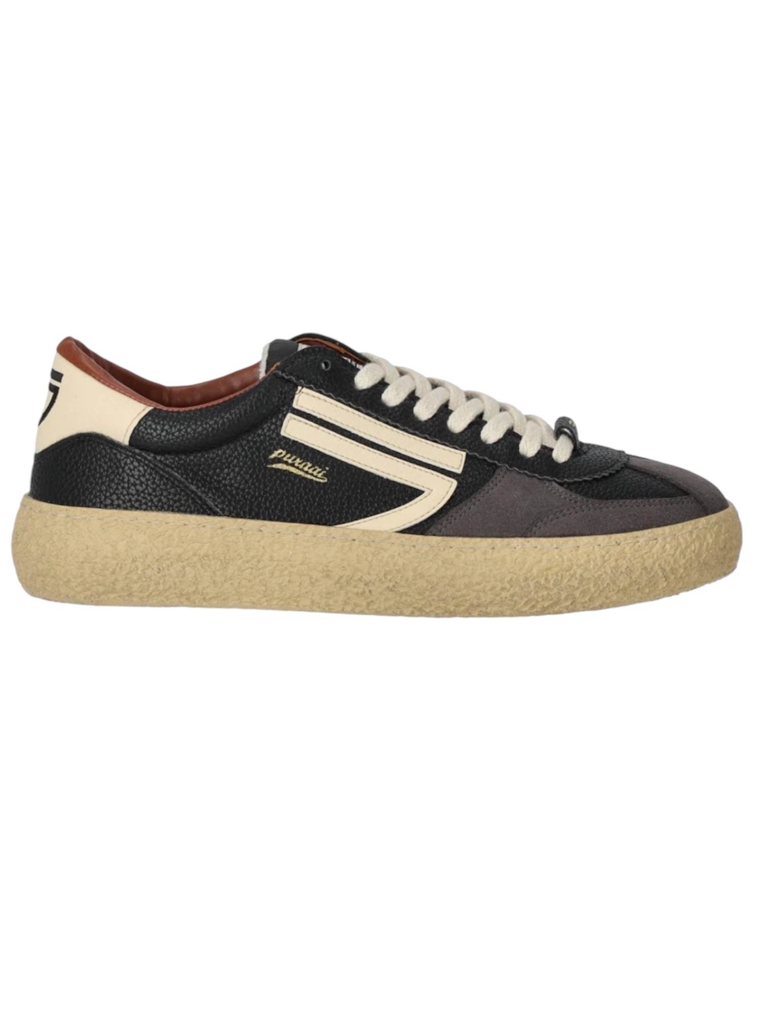 Sneakers da uomo PURAAI. Realizzata in pelle vegana e tessuto effetto suede. Chiusura frontale con lacci, rinforzo sul tallone a contrasto con logo. Cuciture decorative. Suola in gomma.