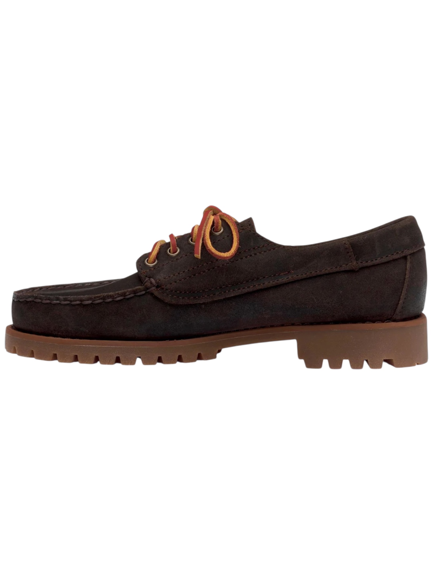 Mocassino da uomo SEBAGO. Modello ASKOOK LUG, in pelle scamosciata con trattamento waxed che dona alla calzatura un effetto cerato rendendola resistente all'acqua. Lacci in cuoio, impunture a vista e fondo in gomma carrarmato.