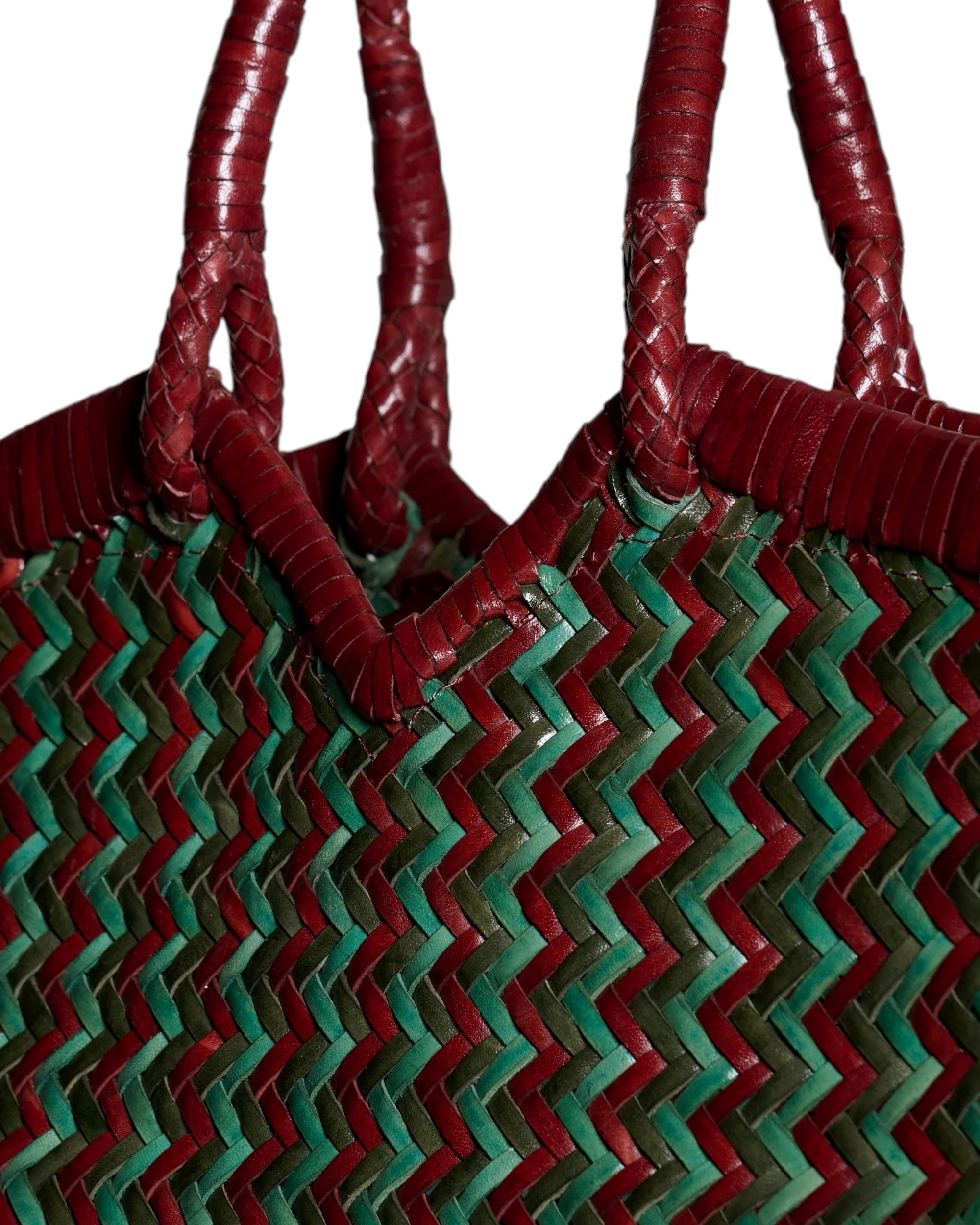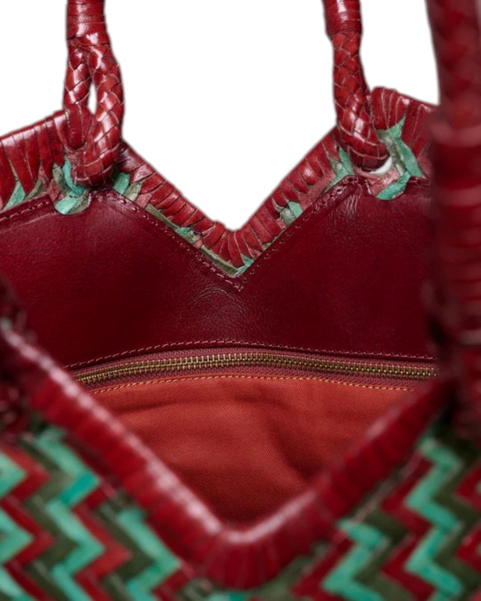 Borsa da donna VIPERA. Modello Crudelia con manico fisso a spalla. Dotato di pouch interno con lacci tirabili per la chiusura e di una pratica taschina. Il modello presenta inoltre una tasca interna con zip e due taschine. Realizzate con pelli naturali selezionate e ogni borsa è intrecciata a mano con cura meticolosa, rendendo ogni pezzo irripetibile. Dimensioni 24x45x14cm. Made in Italy.